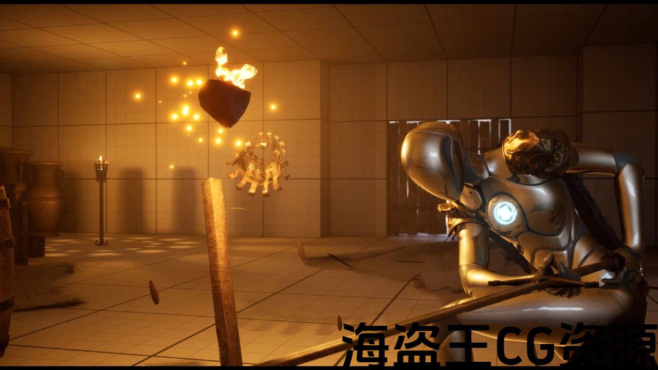 This pack additionally includes 22 game-ready destructible prop and weapon samples, set up with Niagara Particles and sound effects.