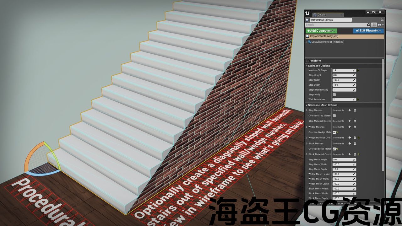 短片: https://youtu.be/9Ml7j4UZZJ8一个程序化的楼梯蓝图,让您可以在几秒钟内从实例化网格体中创建详细的、高度可定制的线性楼梯,这比任何其他制作楼梯的方法都要少。 一个巨大的节省时间的任何游戏与楼梯在它。 -在几秒钟内为任何空间创建一个完美尺寸、步骤数和步骤尺寸的楼梯-有几个基本的楼梯网格可以开始使用-使用你自己的网格或包含的网格-指定任意数量的网格可以随机选择,以避免楼梯看起来重复-可选地将许多台阶网格水平地平铺在宽阔的楼梯上,而不是拉伸任何网格-可选地在楼梯下面建造墙壁,从瓷砖块和楔形网格到可调整的镶嵌水平(见视频)-高度清晰,注释的蓝图图表很容易学习和修改。