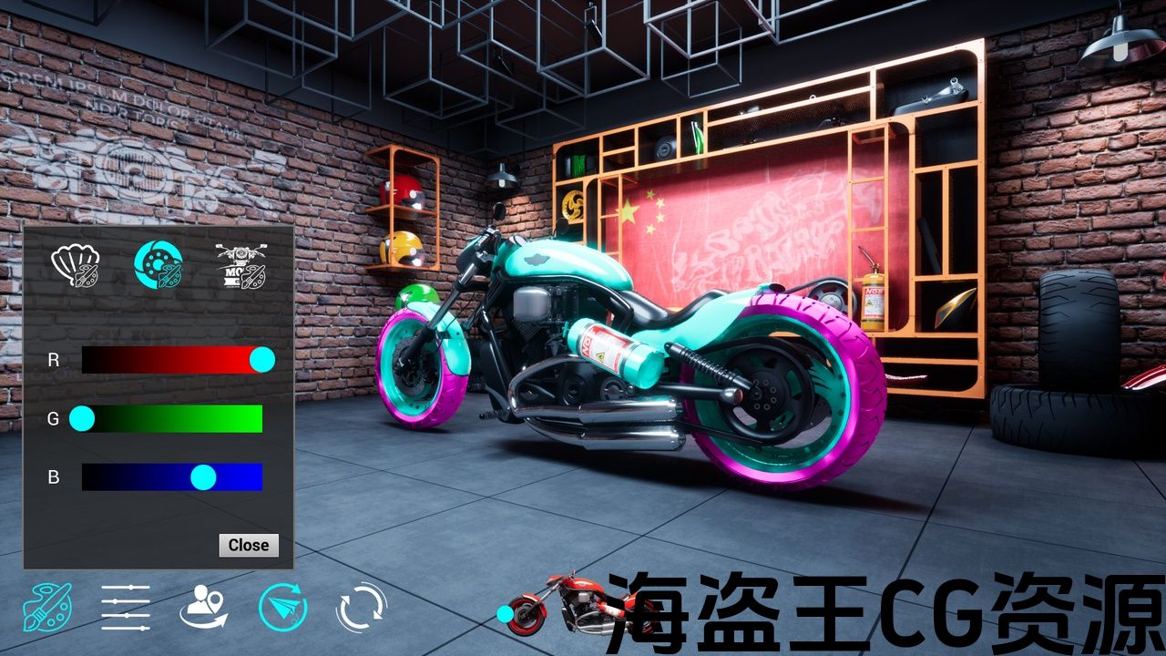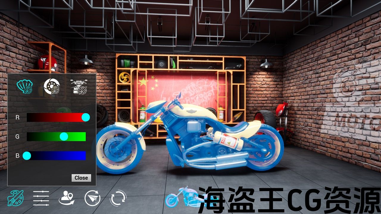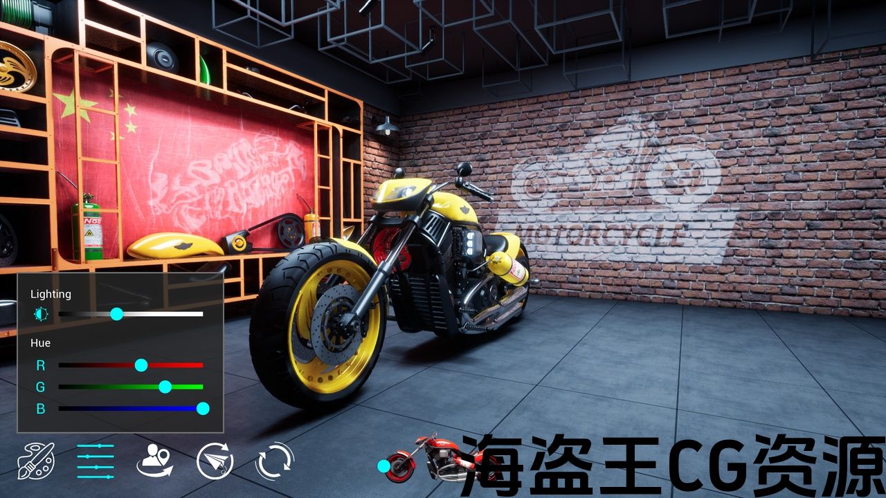您可以实时调整摩托车的颜色,视图的亮度和色调,是否启用自动旋转,切换操作模式等功能