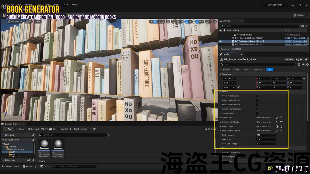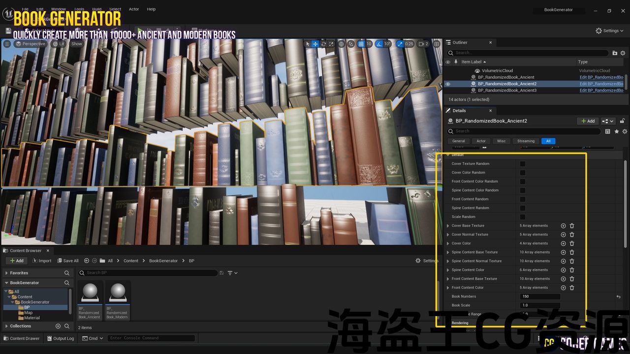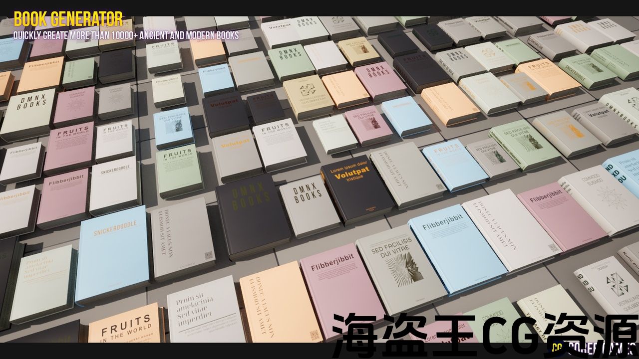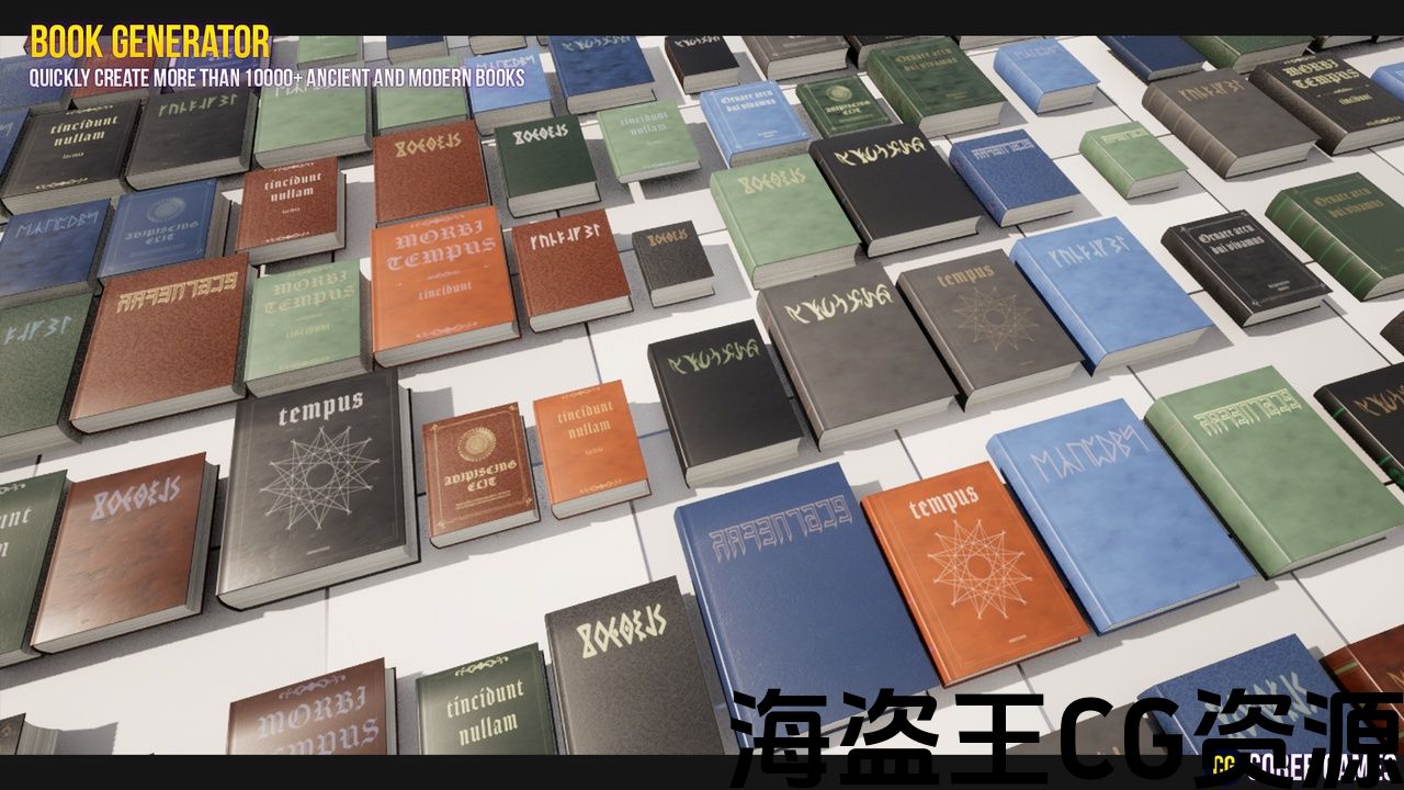 This is Randomized Book Generator to quickly create ancient and modern books. You can create minimum 10000+ books by just entering parameter numbers with 65+ pre-made modern and ancient book textures. With this pack, you can adjust book scale and the range of book size differences, respawn books using random seed for different appearances and add your own textures without limits as new book parameters. All books are customizable ( color, texture, scale, thickness, text, content, etc. )