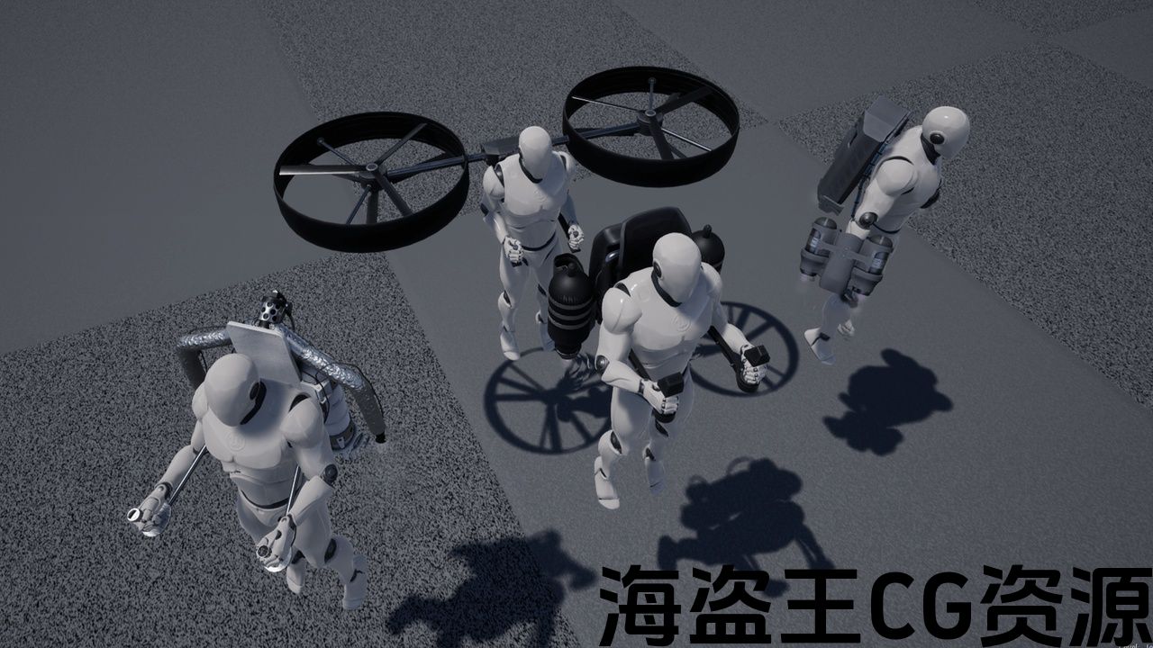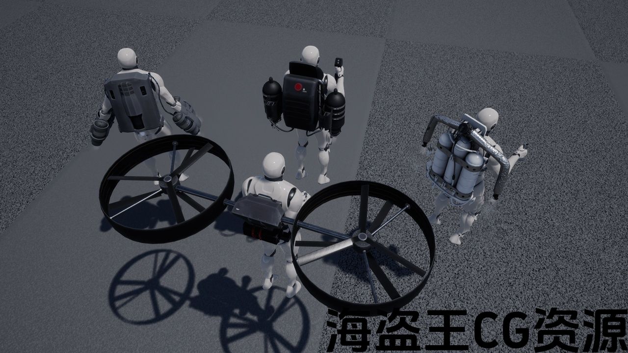 - Animations for the Unreal Skeleton to allow your characters to fly around with the jet packs on, with animations blueprints all fully set up to allow for quick and easy integration into your own characters with minimal hassle.
