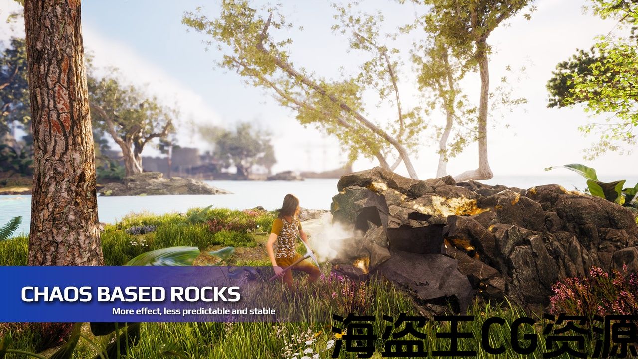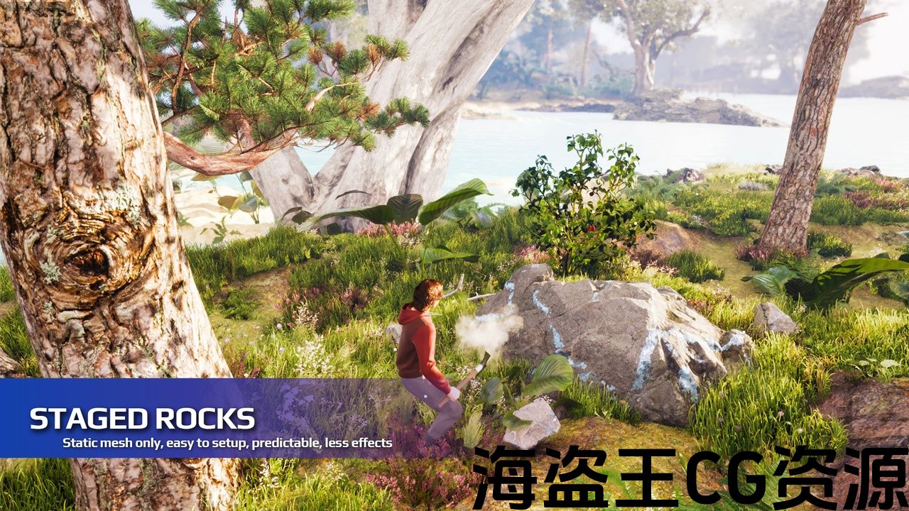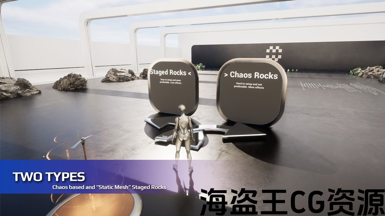 Staged rocks based on a static mesh. The only thing you have to do is select your mesh in the configurable and it will work! It has fewer visual effects but is predictable and stable.