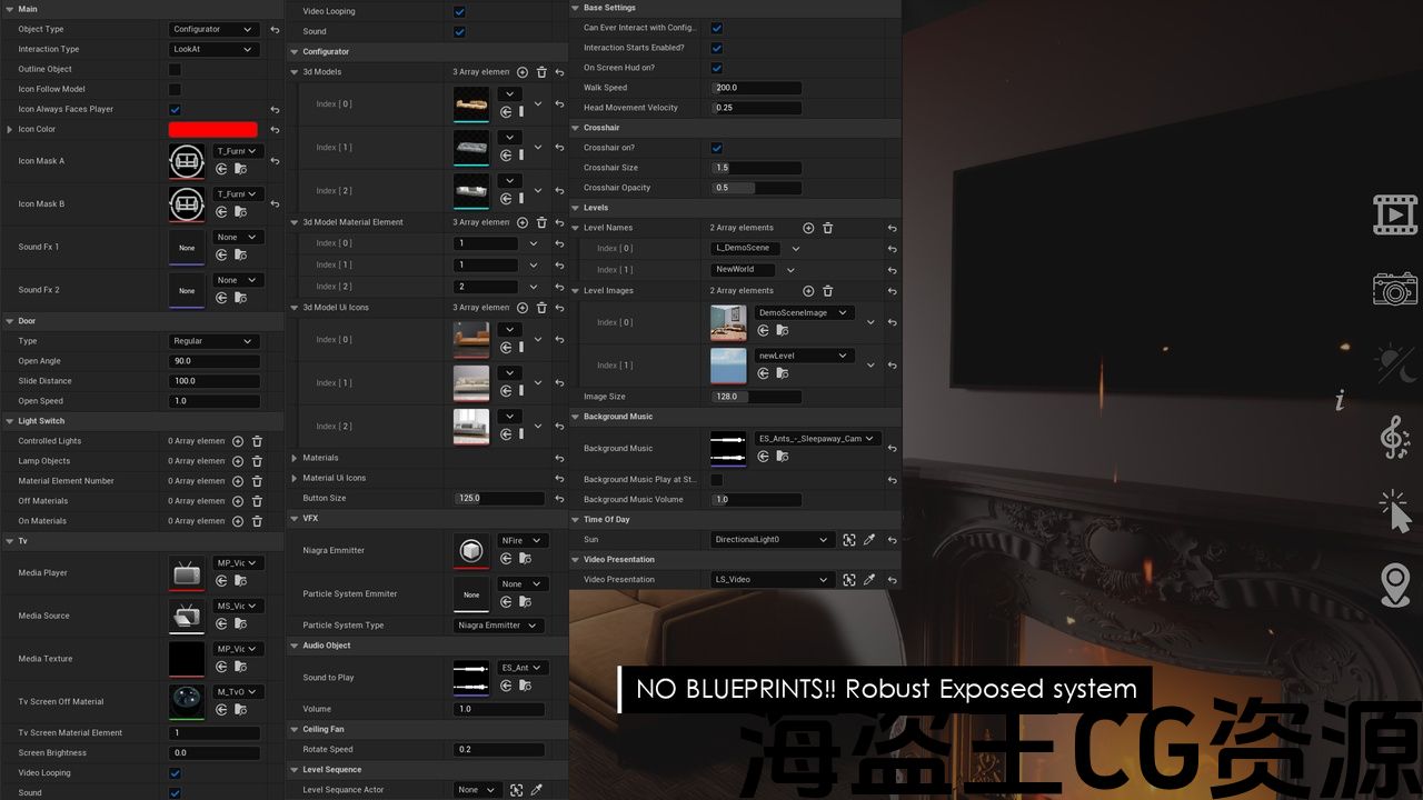 - Fully no code no blueprints solution to creating Architectural walkthrough with interactions