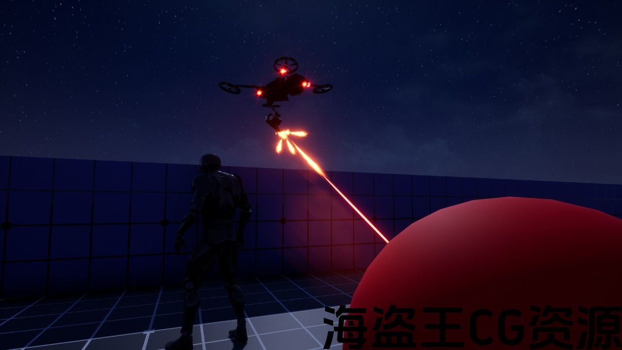 战斗无人机是BP组件,与BP飞行爪子一起工作,可以从角色控制,所有系统功能和AI逻辑都是在蓝图中设计的。