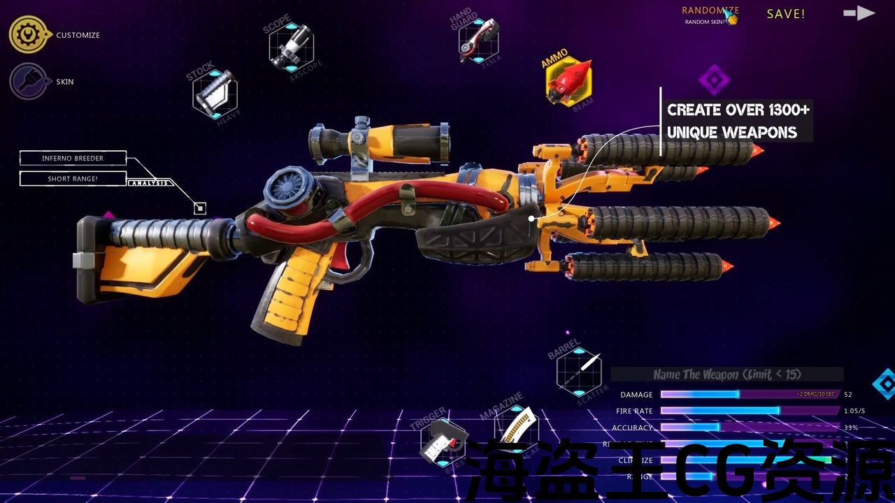 - 1:七个可定制的部分调整武器统计,提供无限的可能性,各具特色的枪支。
