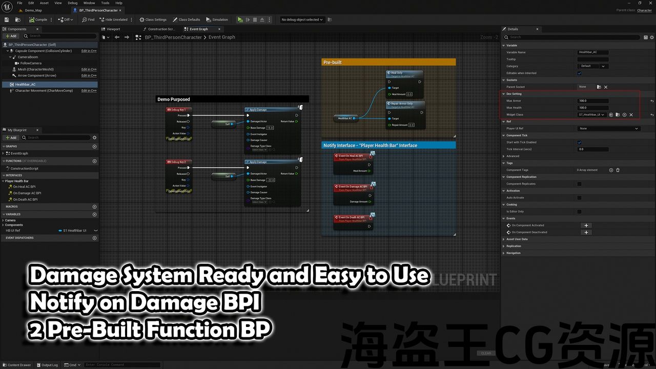 直观的损坏应用程序: 使用应用伤害节点轻松伤害或治疗玩家.