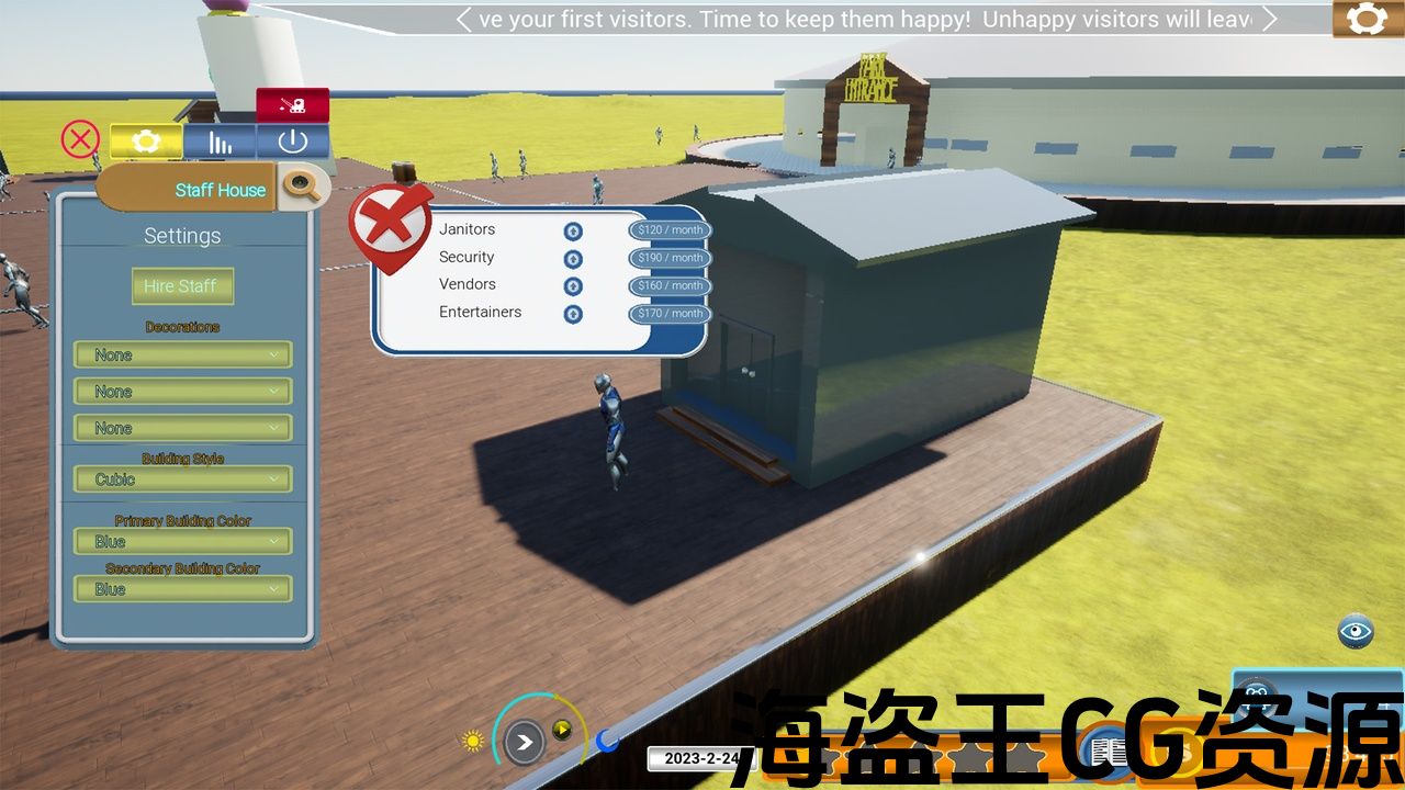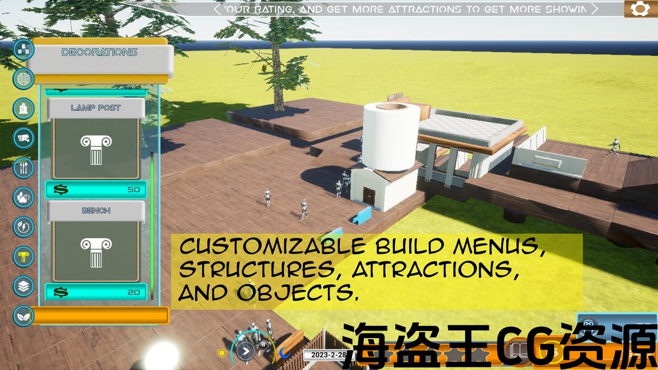 The Tycoon Template is slightly more aimed towards zoo building, however, it covers a vast majority of the mechanics required for a rollercoaster or theme park. All current “attractions” can be converted to theme park, zoo or other locations for visitors to satisfy their needs.