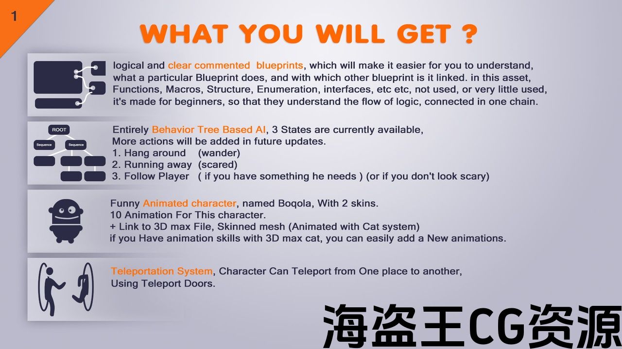 权利资料: 我们保证 – 此资源的所有组件都在我们的工作室中创建!!! 所有的模型,声音,音乐,着色器,蓝图,动画,图标,粒子,都是由我和我的声音设计师亲自制作的。.. 角色名称,游戏玩法,场景,角色外观,是我幻想的一部分,不被复制或窃取,不违反任何法律或法规!!! (此外,资产不包含Megascans资产或纹理。 )