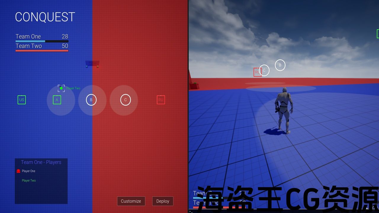 产卵系统,您可以点击按钮产卵位置或玩家位置。 有一个征服,可以捕获的球员为他们的团队,和得分系统。