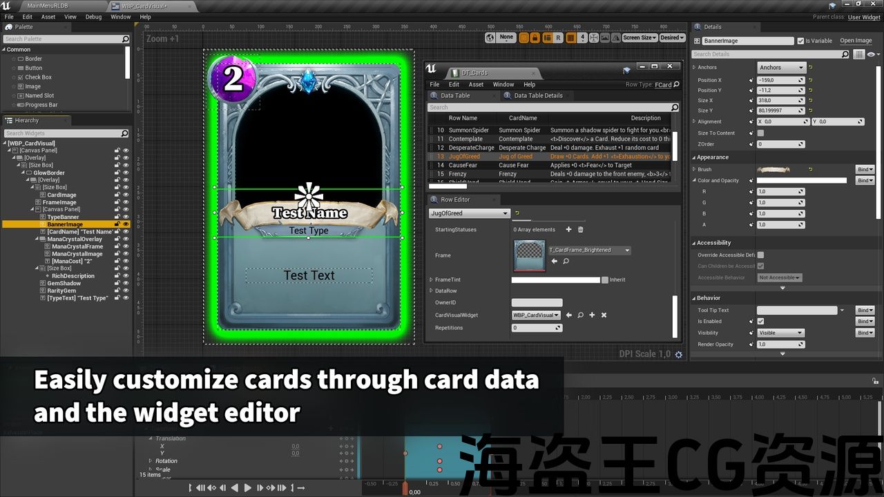 The asset is data driven and largely component based, letting you easily add new cards, minions and artifacts through data tables and defining their behavior through components.