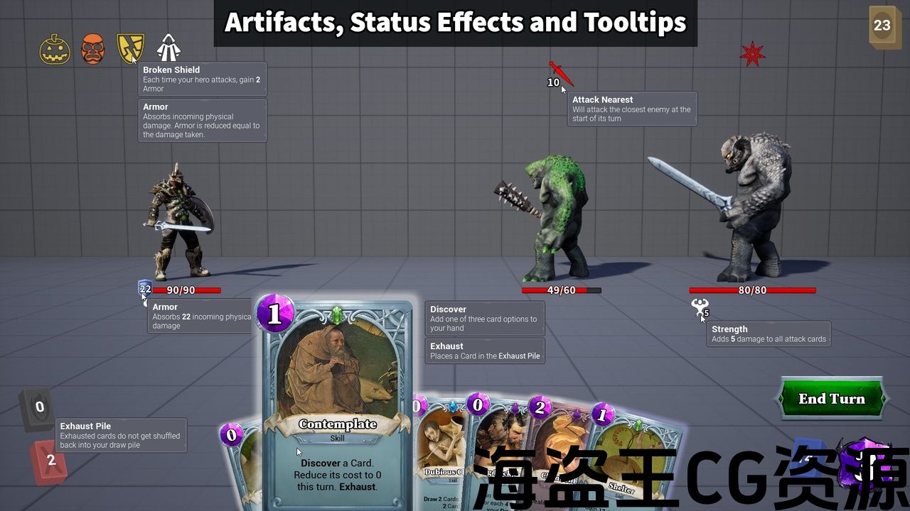 · Deep UI system, including card widgets, status effect display, enemy intentions, tooltips and more.