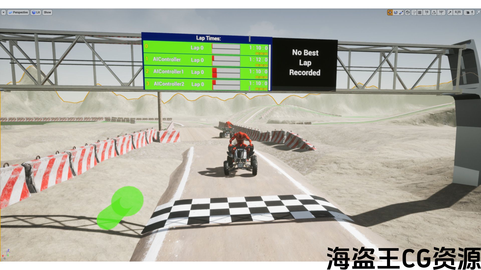 - BP_StartingGate actor类,用作触发器盒,但也用作具有最佳圈数等的3D面板