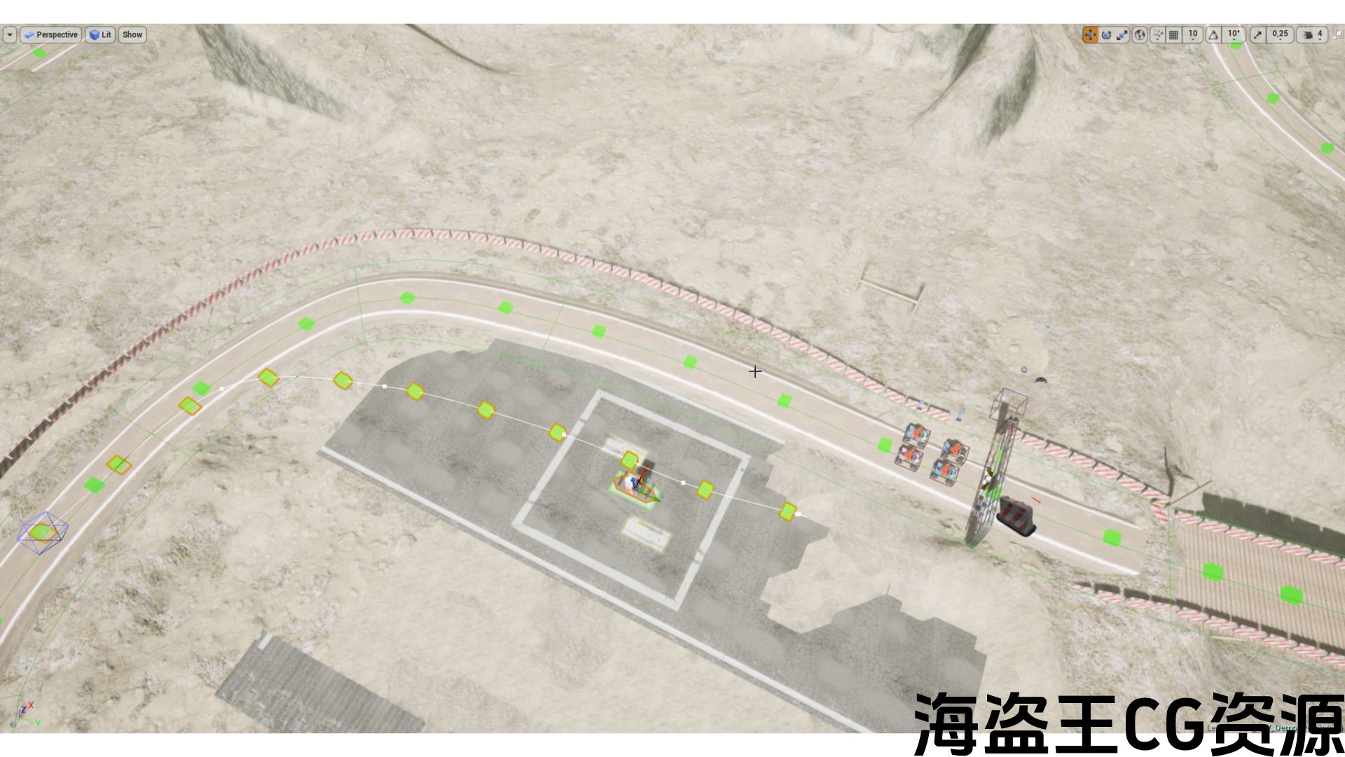 - 跟踪可以自动创建一个景观样条或可以调整使用样条沿路径拖动,坑箱车道可以很容易地添加到允许加油