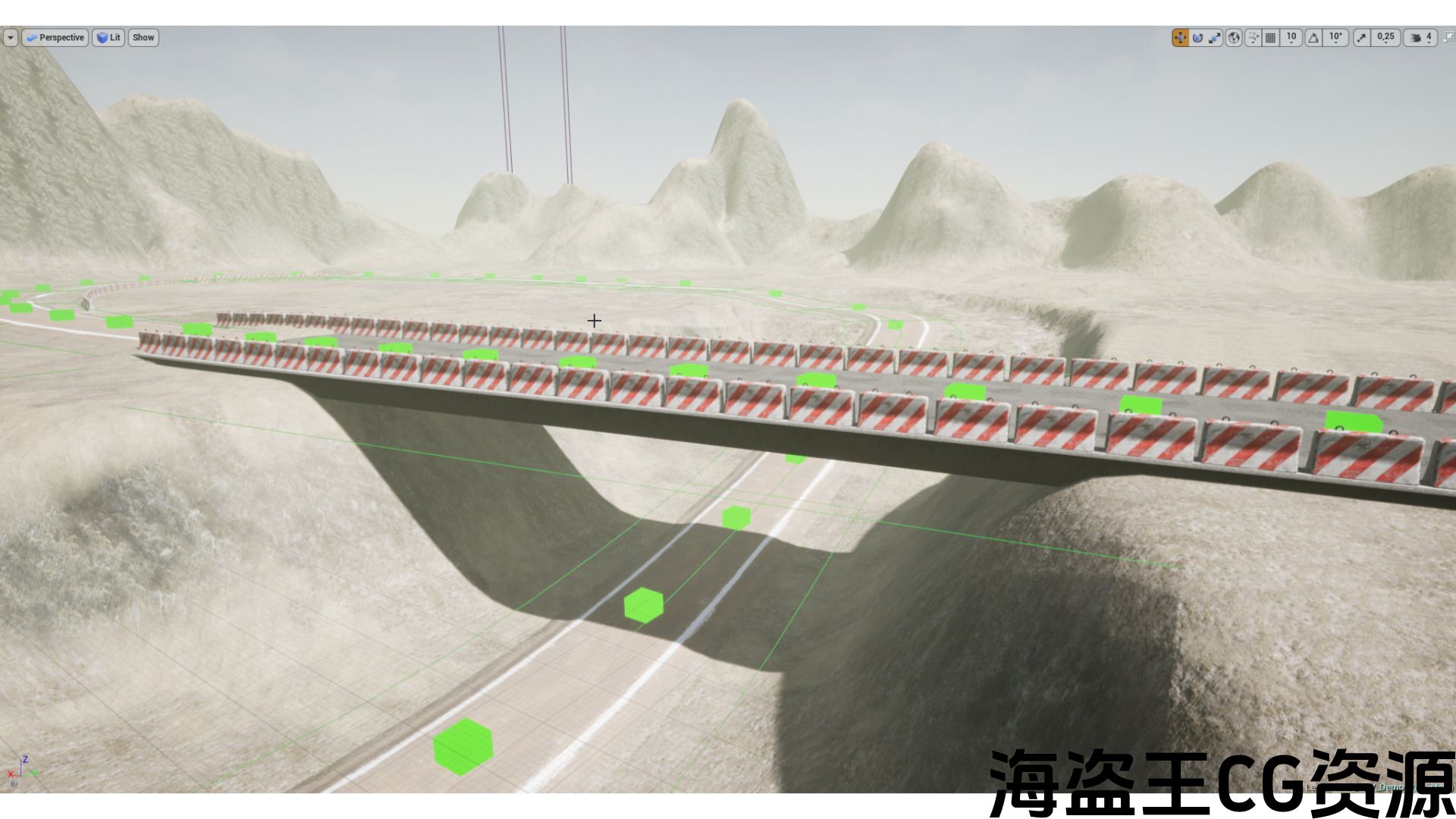 - BP_Barrier actor类,用于创建具有层次结构实例化静态网格体和样条的道路障碍