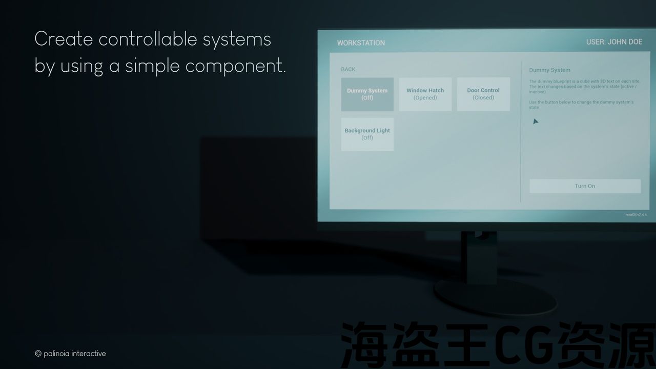 除了核心交互功能,复杂的示例用例的形式 准备使用蓝图 类也包括在内。 这些蓝图类涵盖 电脑终端机,可用于访问预定义的邮件和控制连接的系统, 键盘 用于切换系统状态以及简单 开关按钮. 可控系统可以是使用集成系统组件的任何其他actor。