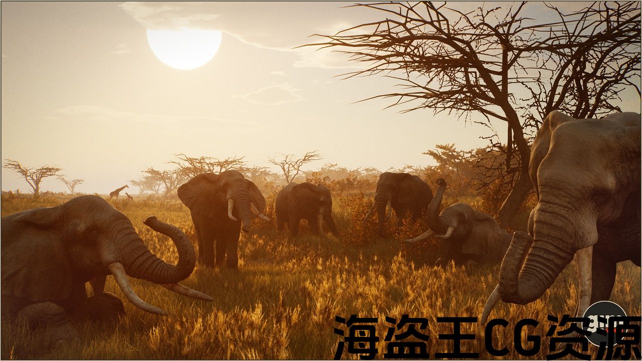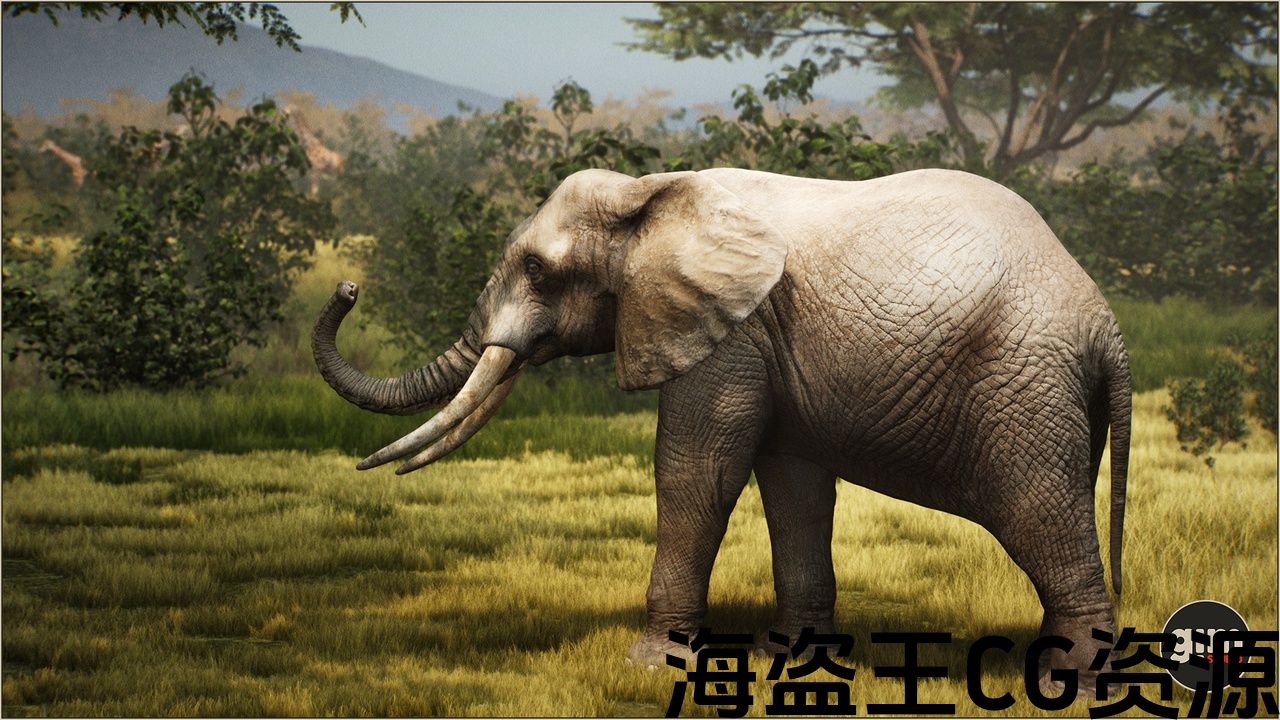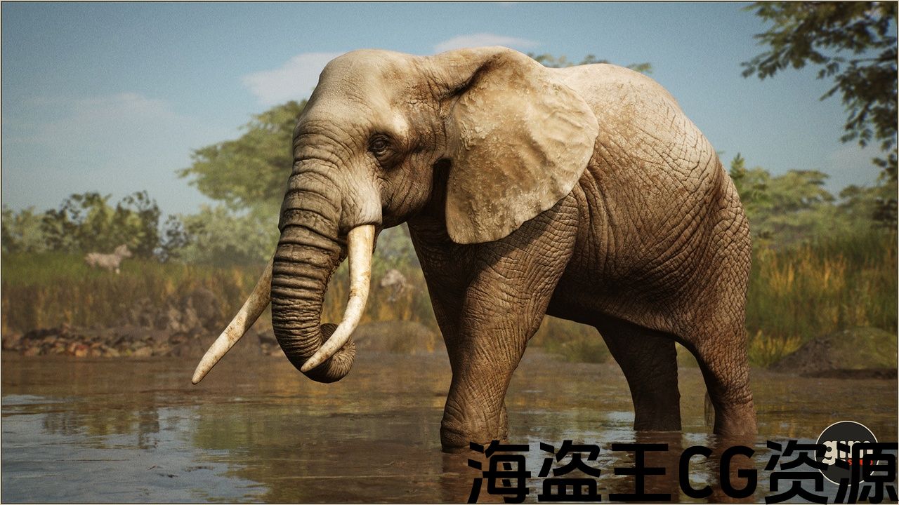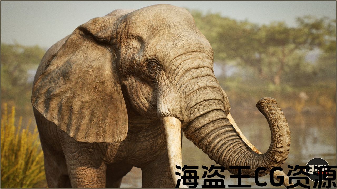 Realistic male African Elephant with animations authored at 60fps, 4K Textures, bone mesh, and detail mapping.