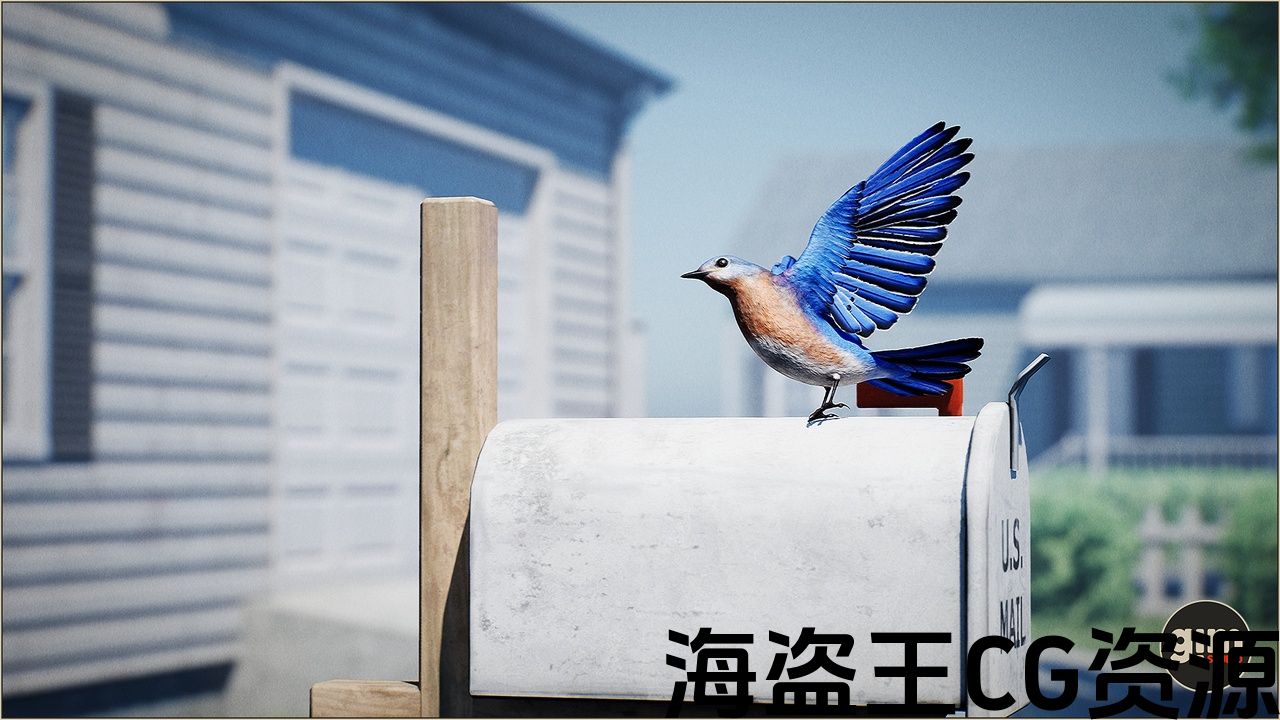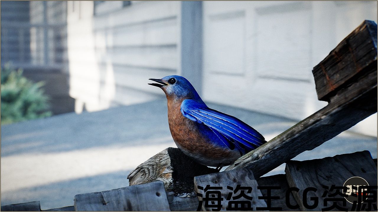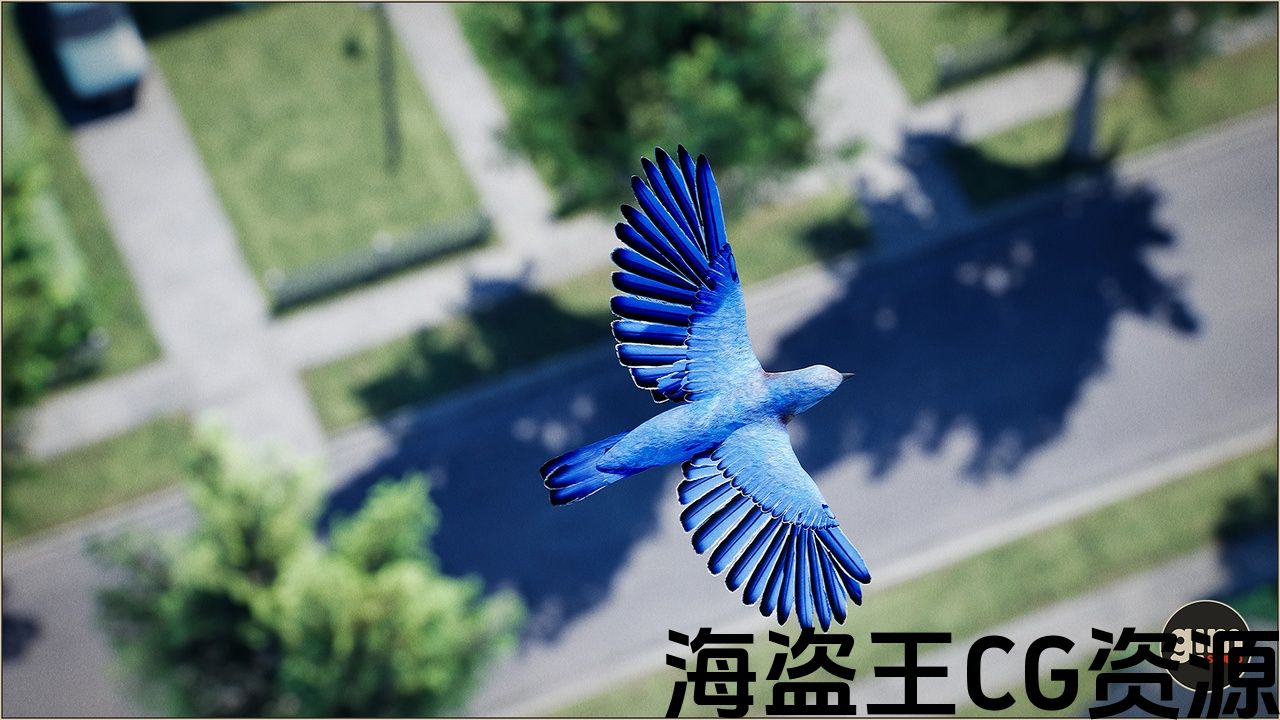 逼真的蓝鸟与动画创作在60fps和4k纹理。