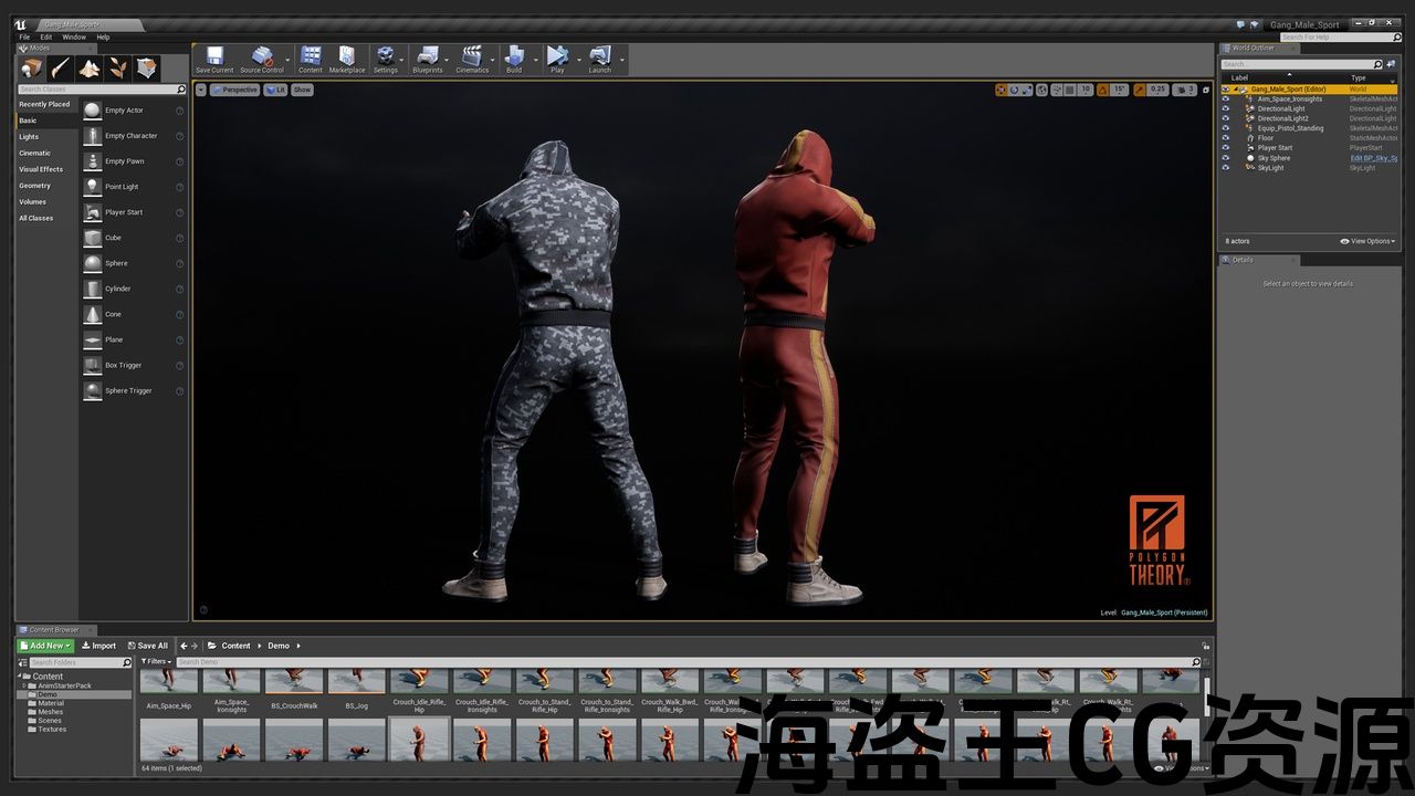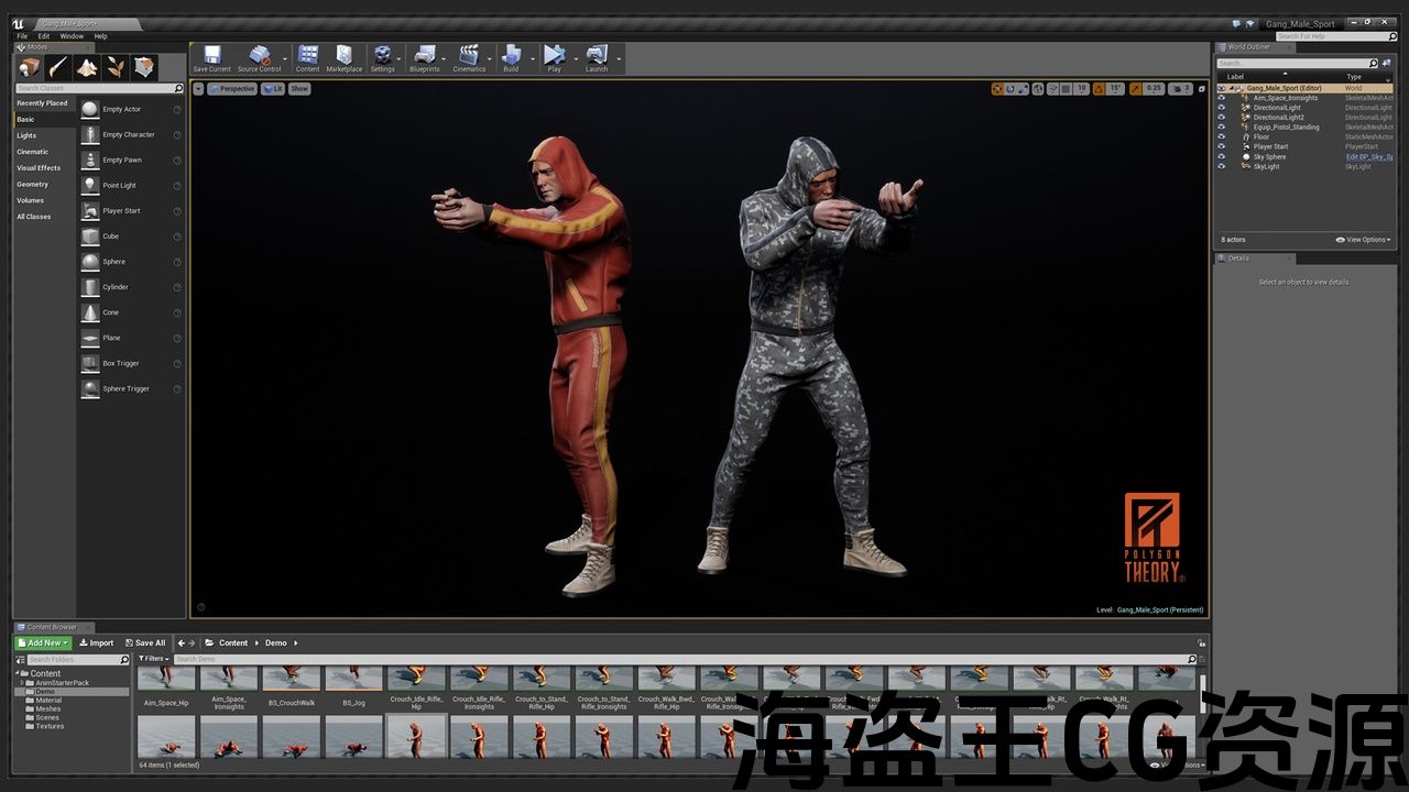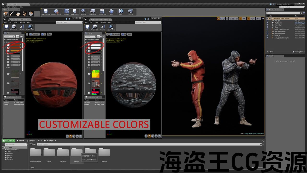 帮派角色完全使用史诗骨架操纵。 与免费动画包一起工作。 具有3种可定制颜色的材料。