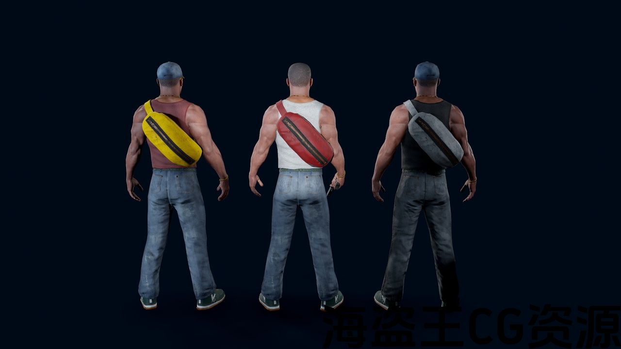 Large selection of textures. 3 t-shirt Options, 2 jeans and cap options, and 4 bag options