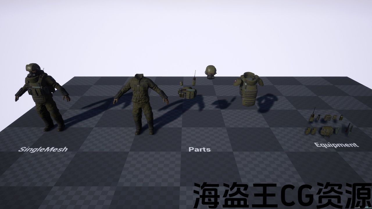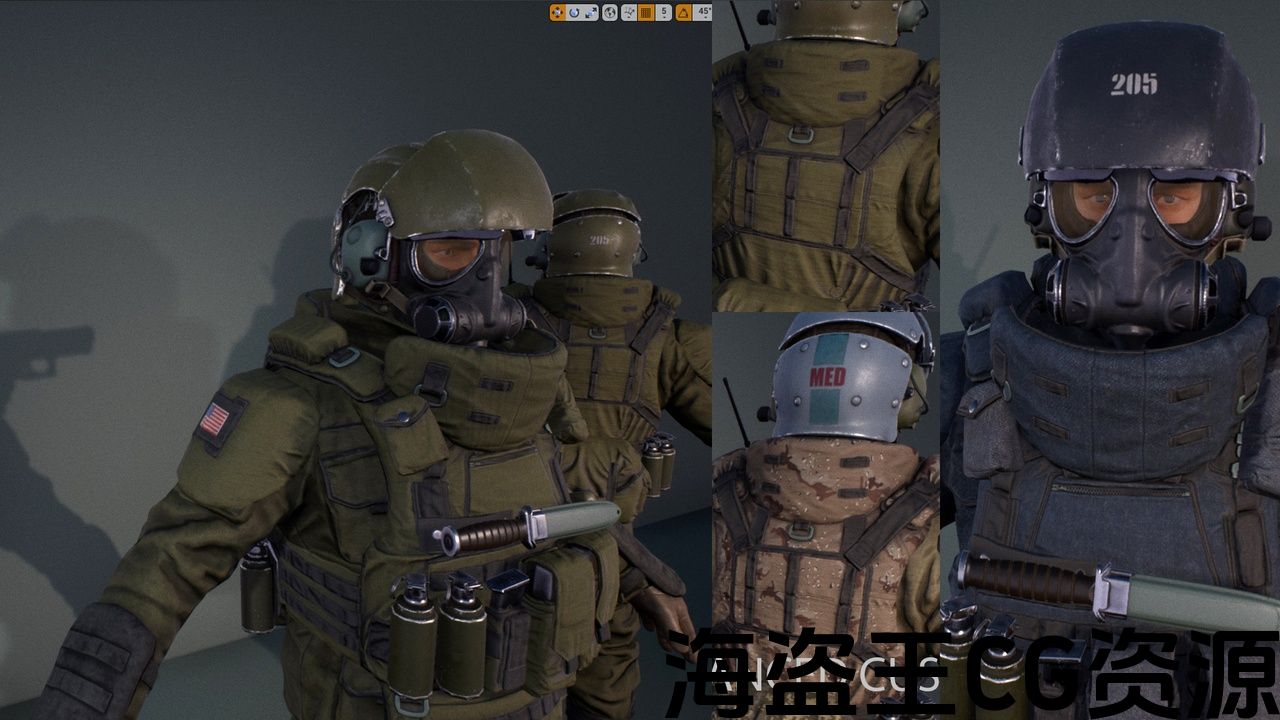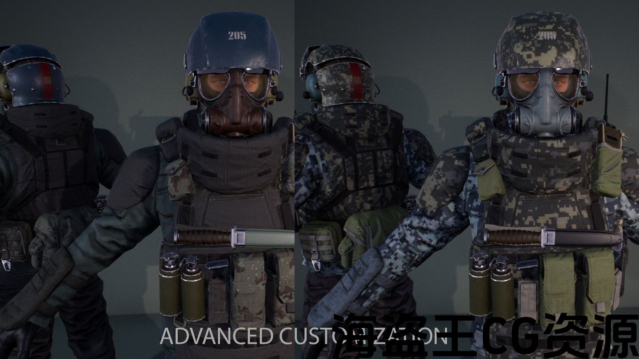 重装甲士兵在现实或科幻游戏中使用。 模块化系统使您可以单独使用部件。 先进的材料系统让您只需点击几下即可创建独特的资产。 您可以选择提供的伪装模式或简单地添加您自己的。 模型与标准UE人体模型共享骨架,因此,该资产可以很容易地集成到您的项目中。