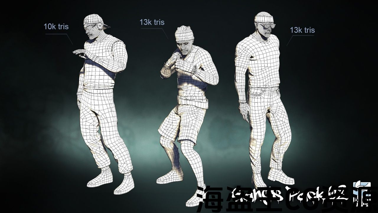 Tris counts of characters: Gang_01 10k, Gang_02 13k, Gang_03 13k
