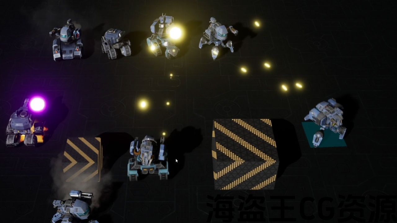 该软件包包含动画复合机械部件,您可以从中组装完成的机器人。 还有蓝图脚本来生成一个现成的战斗单位,之后可以控制该单位并安排它们之间的战斗。 这不是一个成熟的战略游戏,而是一个帮助创建自己的游戏的机会的例子。