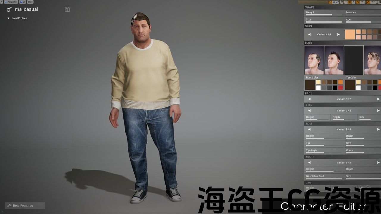 形态,如肌肉发达,肥胖,衰老和动态尺寸~160cm至~185cm(ue4人体模型仅ue5/元更新在dev)