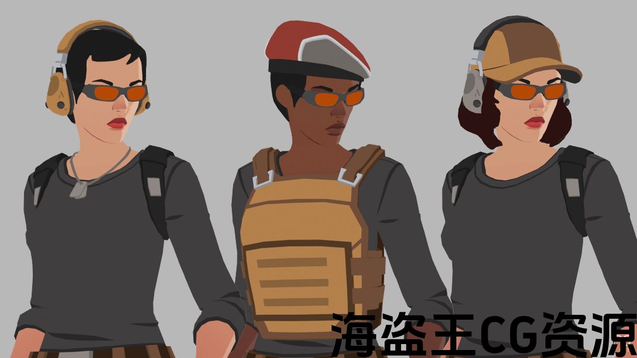 The characters are provided as both standalone models (only one skeleton needed for maximum performance on mobile) and modular models (head/upper/lower).