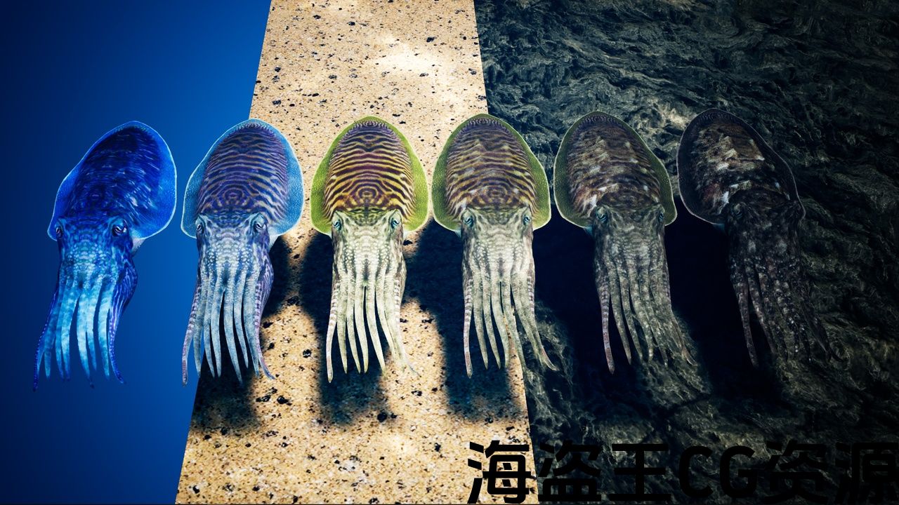 介绍墨鱼伪装包,配备了先进的程序样条动画系统,动态改变墨鱼的伪装,因为它优雅地滑过不同的表面!