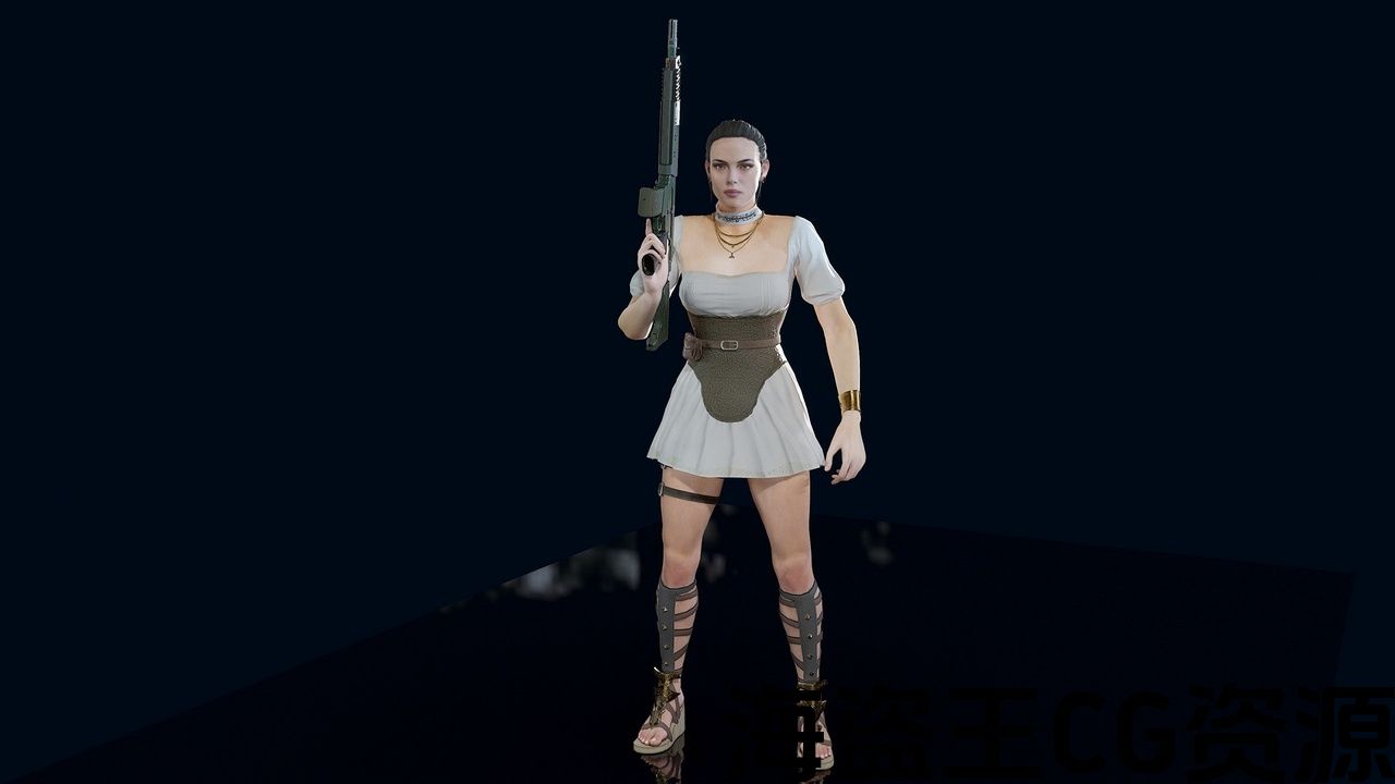 一个游戏准备的低波利,与史诗骨架字符与PBR纹理.