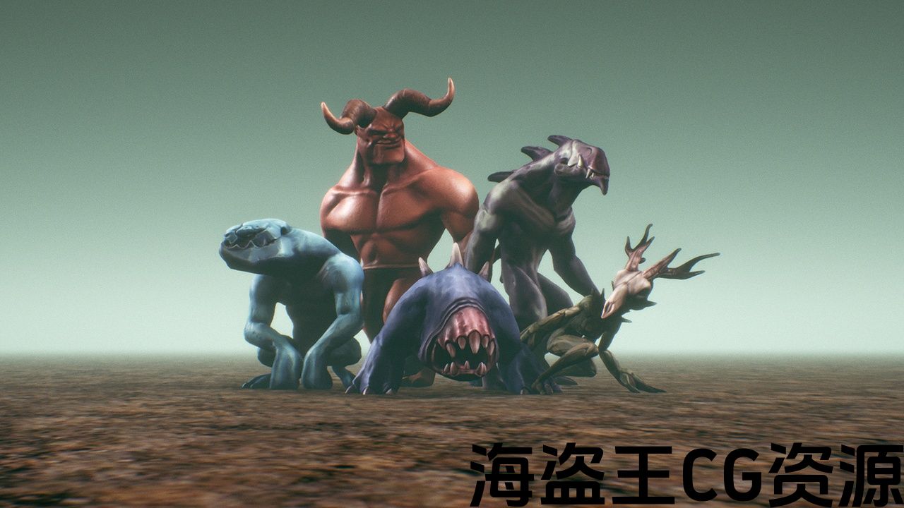这是一个包含5个半卡通风格的怪物角色的包,它们是怪物,恶魔,森林生物,怪物狗和外星人。 每个角色都包含一个具有1024×1024纹理大小的颜色、法线贴图和遮挡纹理的单一材质。