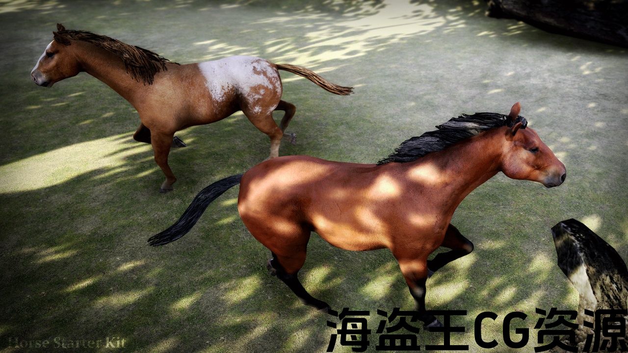 • (1) Fully rigged and animated Horse skeletal mesh with reins, and saddle pieces