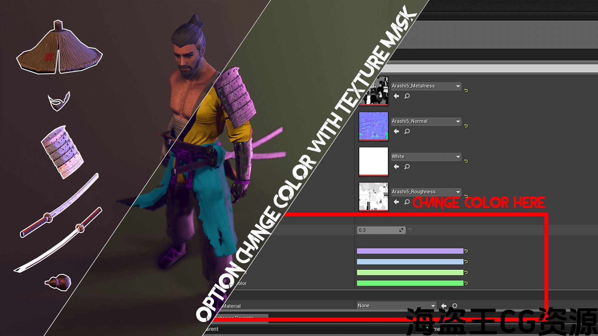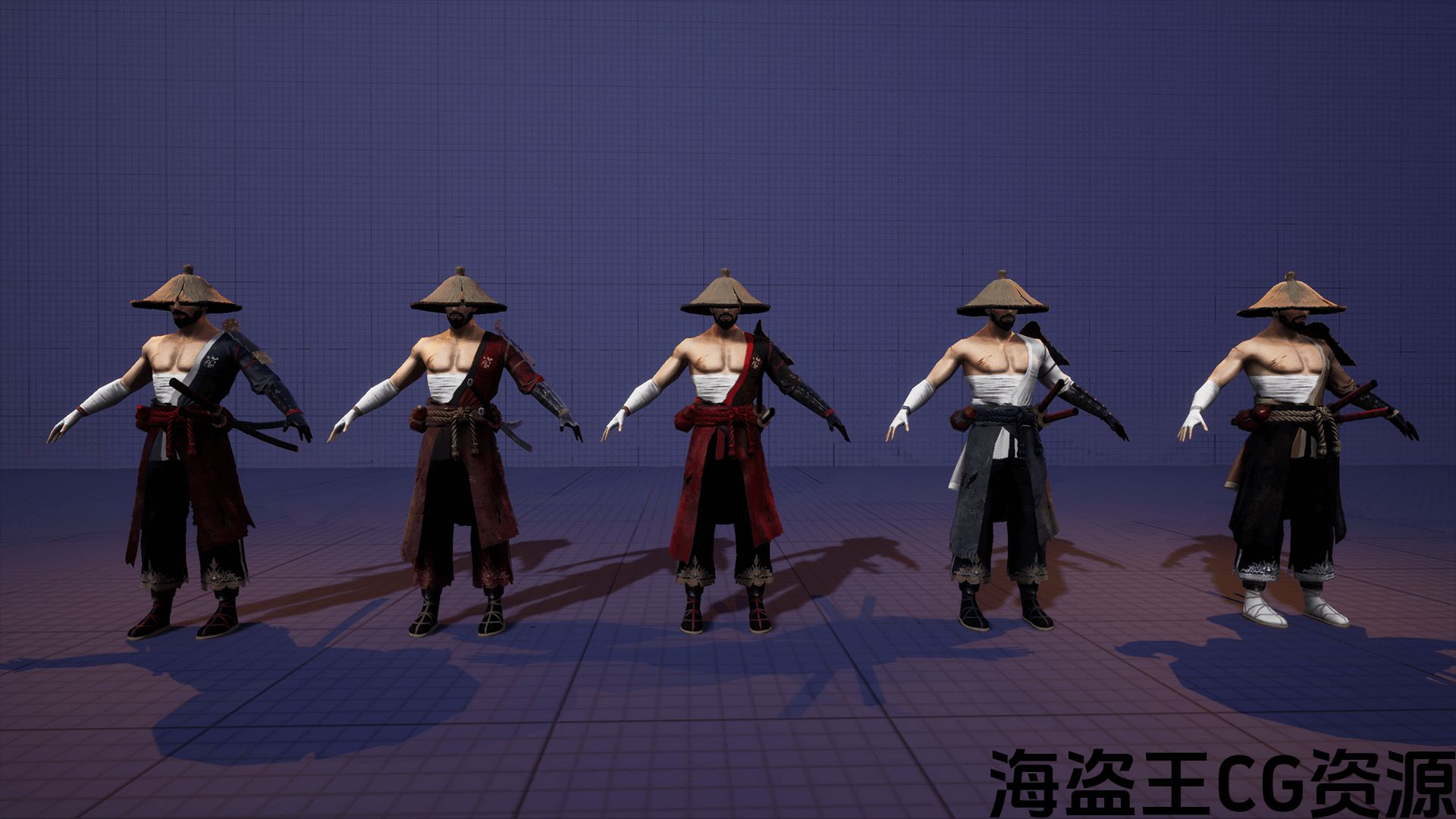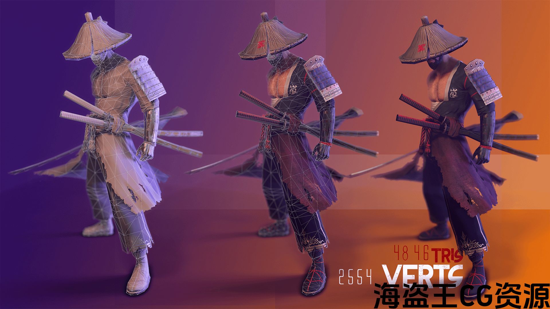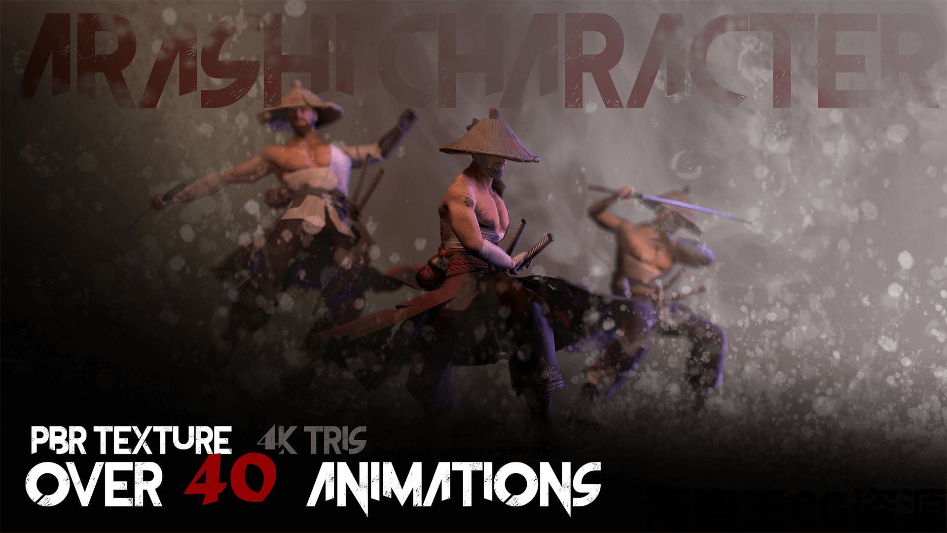 日本浪人风格的角色与PBR纹理和超过40个动画