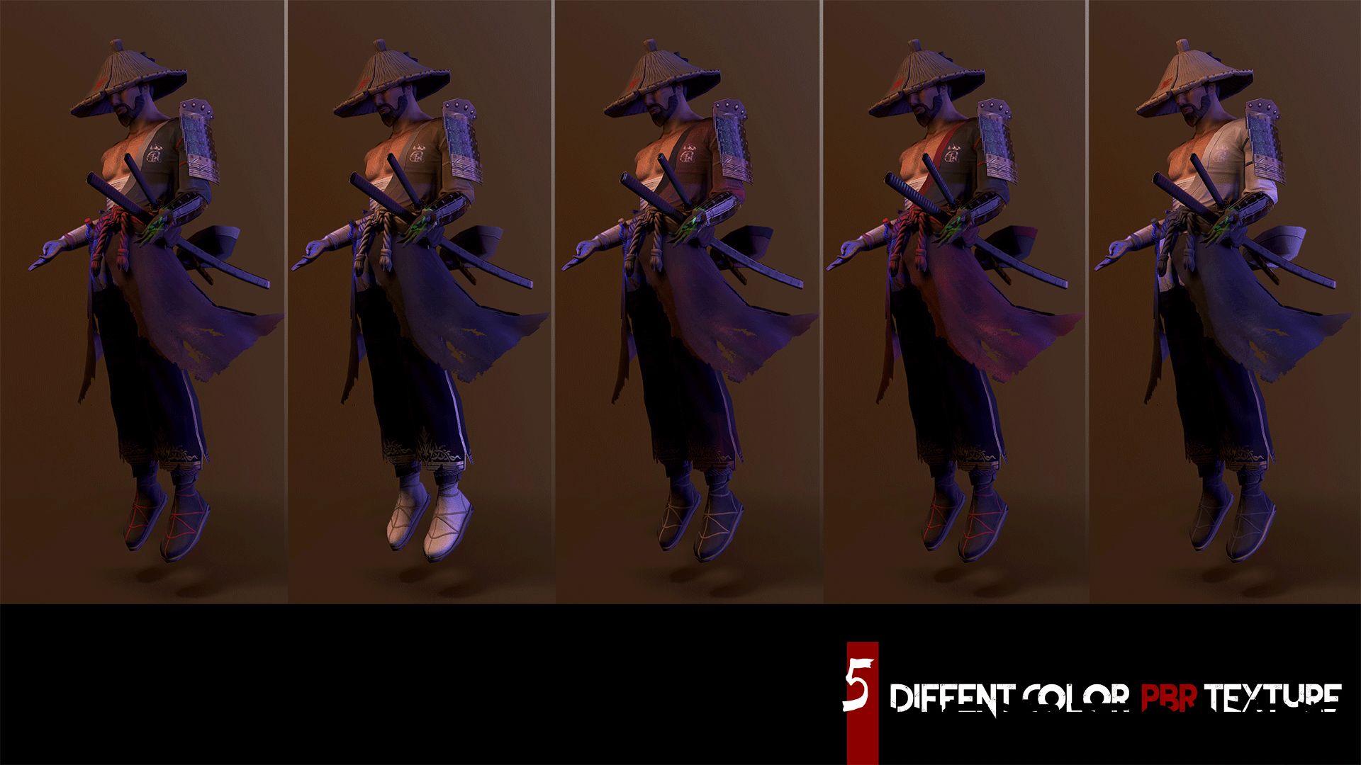 The Japan Ronin Style Character with PBR texture and over 40 animation