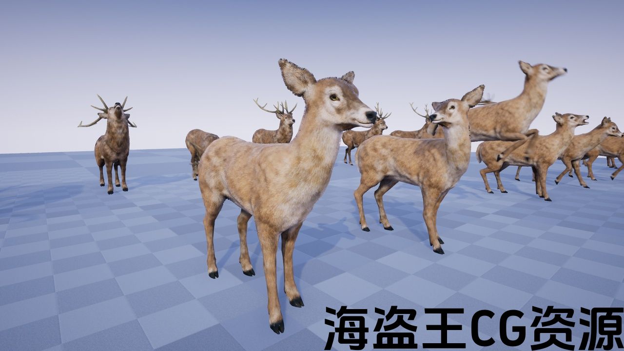 Deer Stag: 11.18 Ktris, 8.83 Ktris, 6.48 Ktris /31 bones/2 mat/4K tex/11 anims