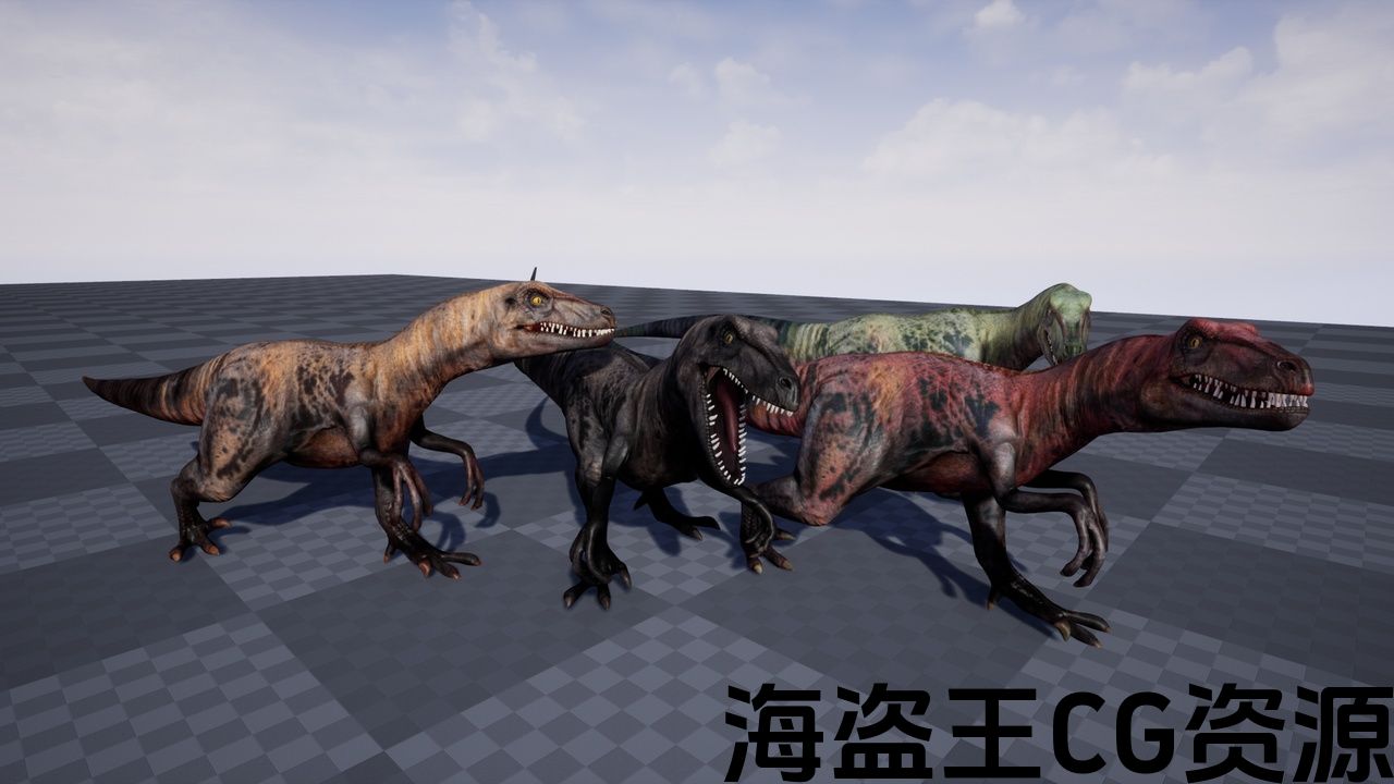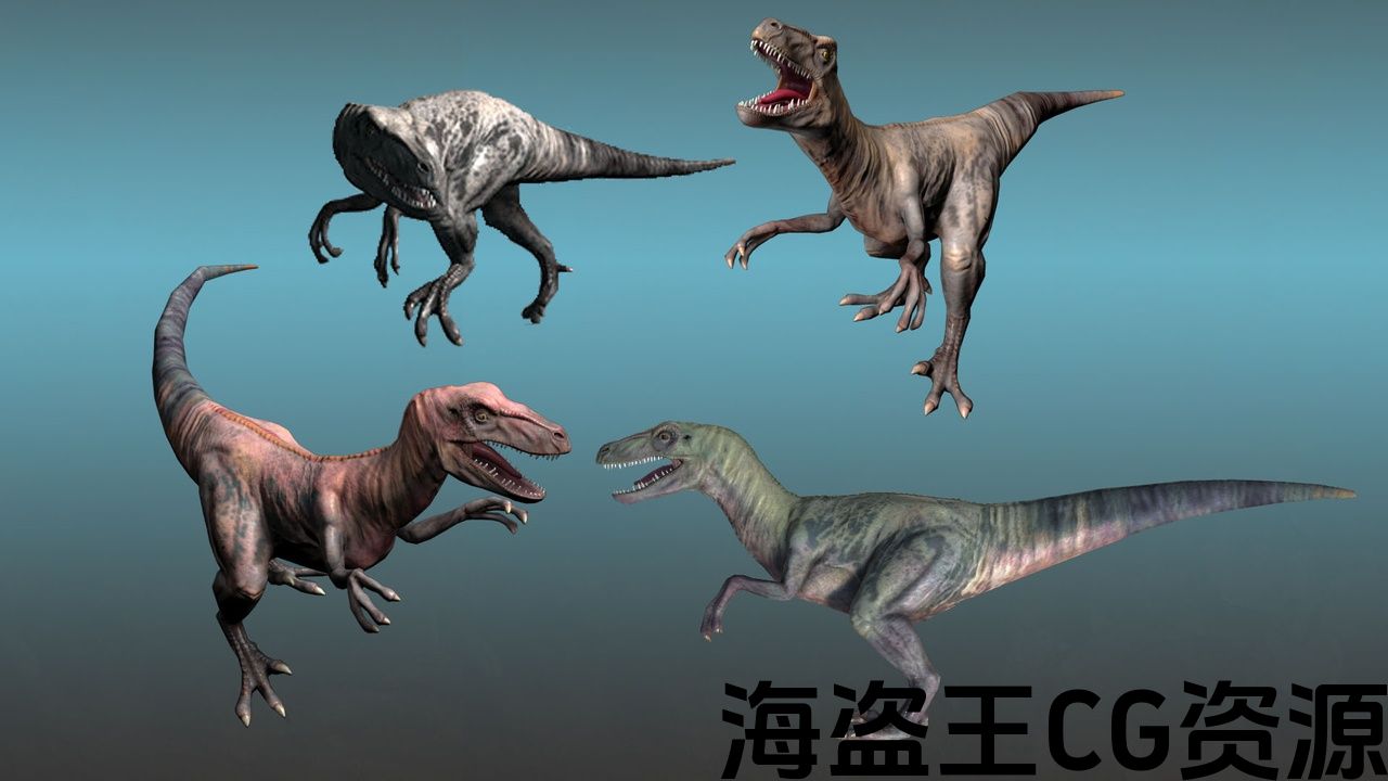 这是一个高速迅猛龙的高聚3D模型,网格优化为低聚版本: