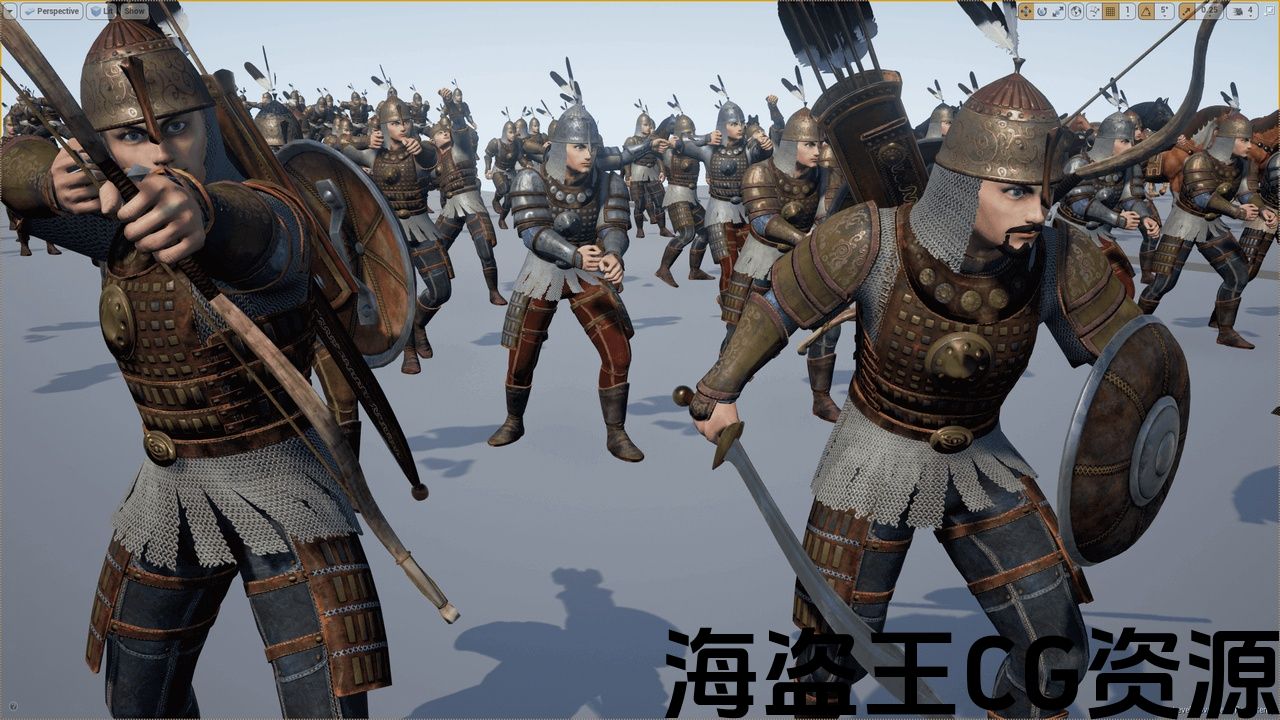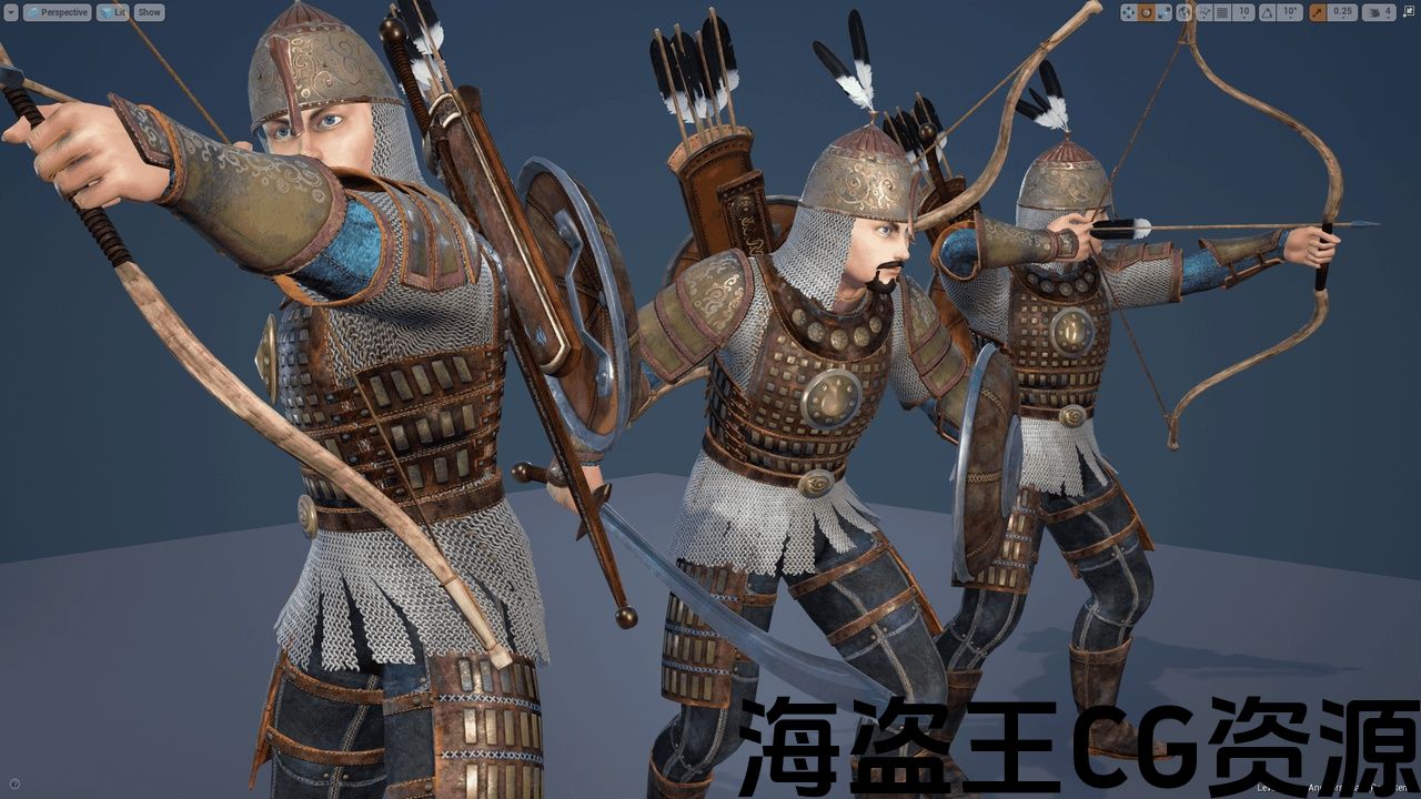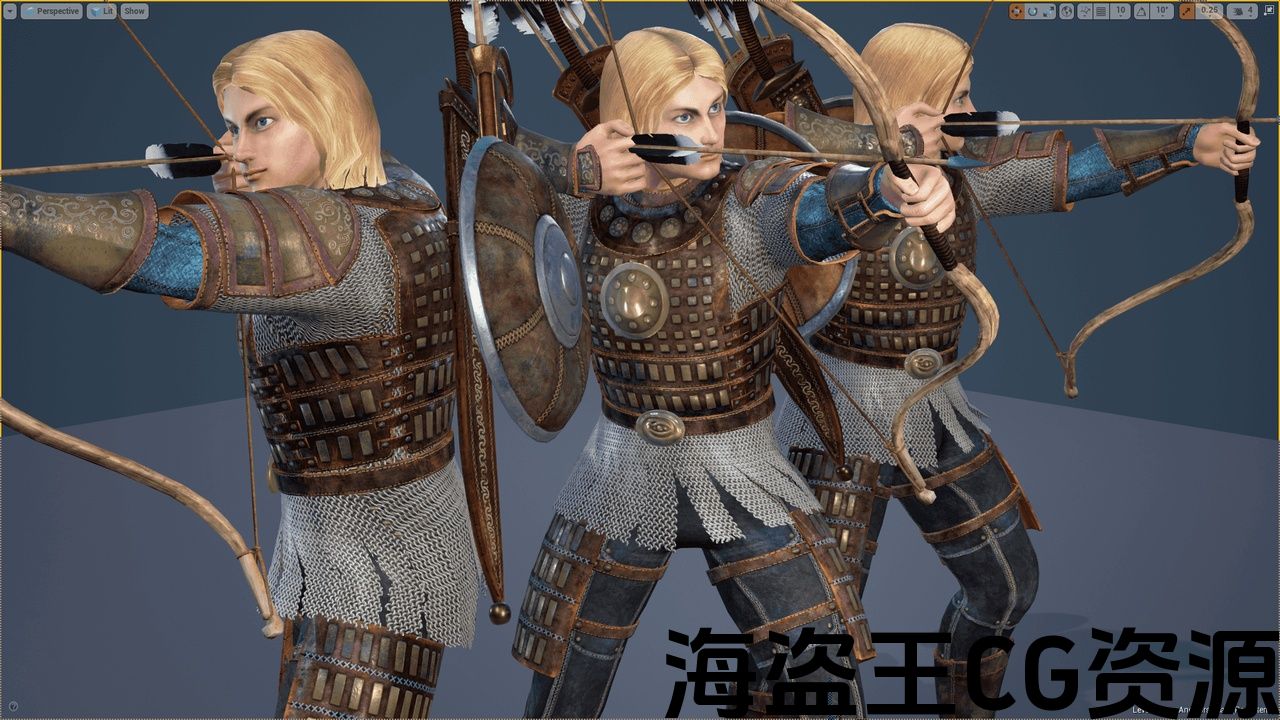 角色数量:3个角色蓝图,43个”骨骼网格”,包括身体,身体部位,头发,衣服和动画弓。