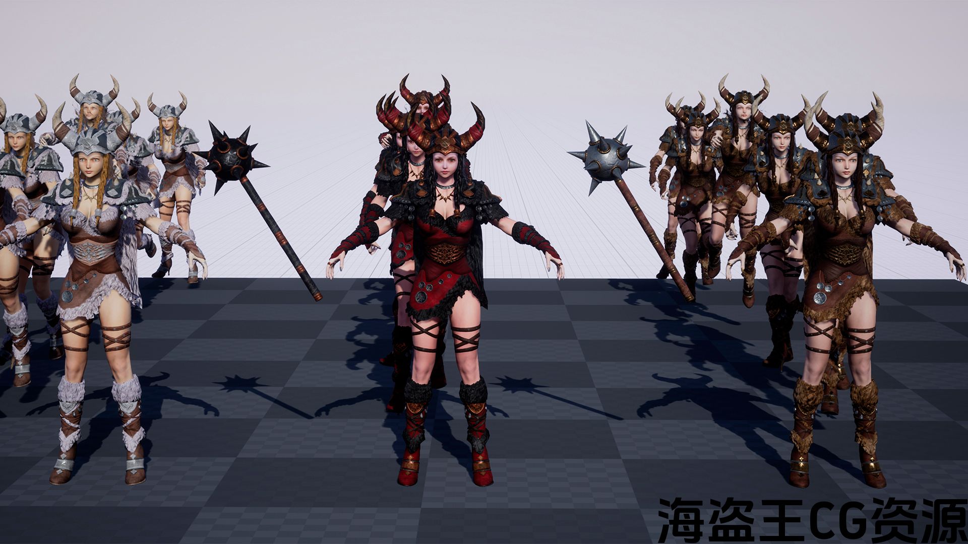 角色野蛮人女孩的低聚模型