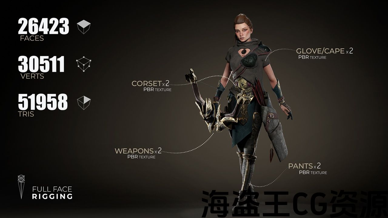 还有额外的骨骼用于乳房,织物背面/正面,箭袋,箭头,羽毛,