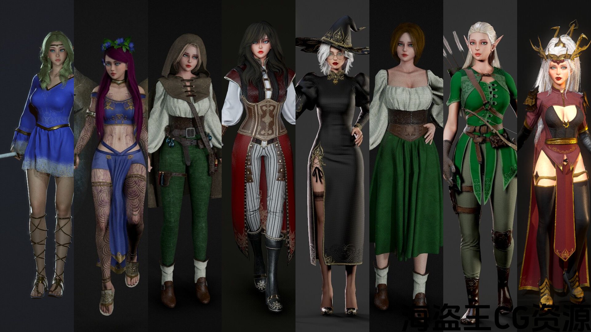 字符的顶点计数:仙女-27636;黑暗法师-47369;中世纪Harbelist女士-31320;巫师女孩-25642;弓箭手女孩-44104;巫师女孩-22 260;击剑女-34570