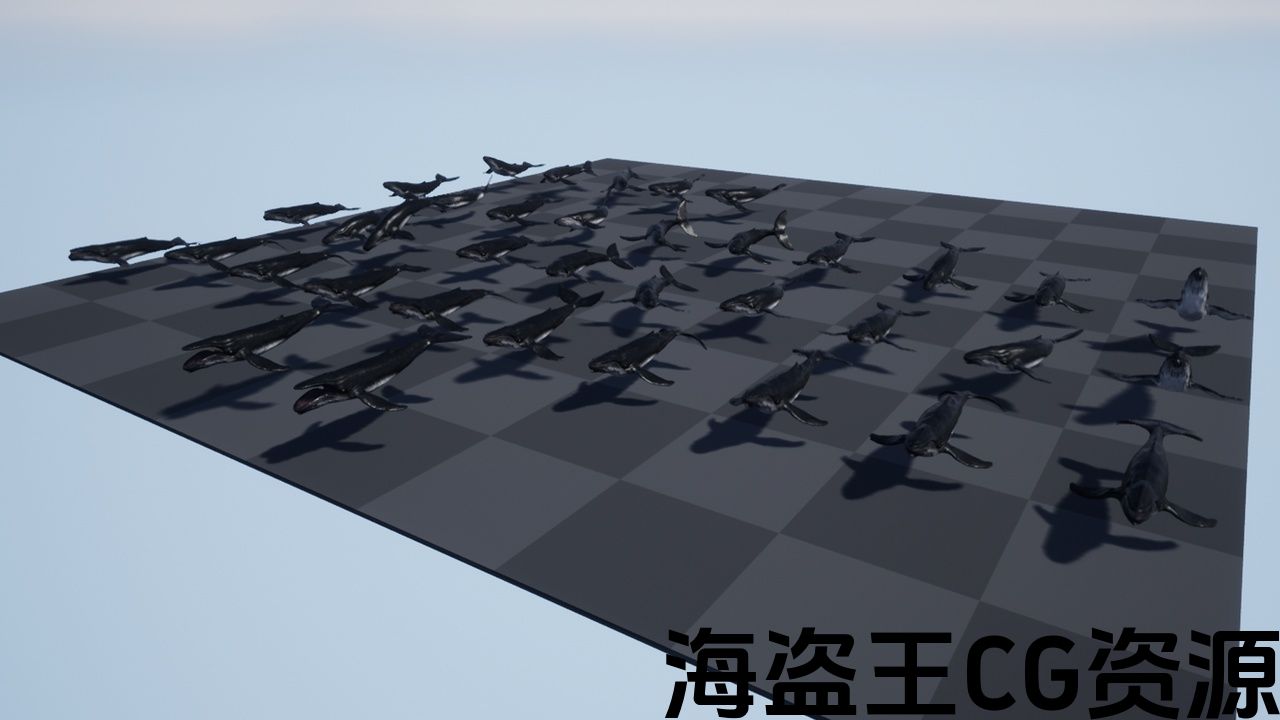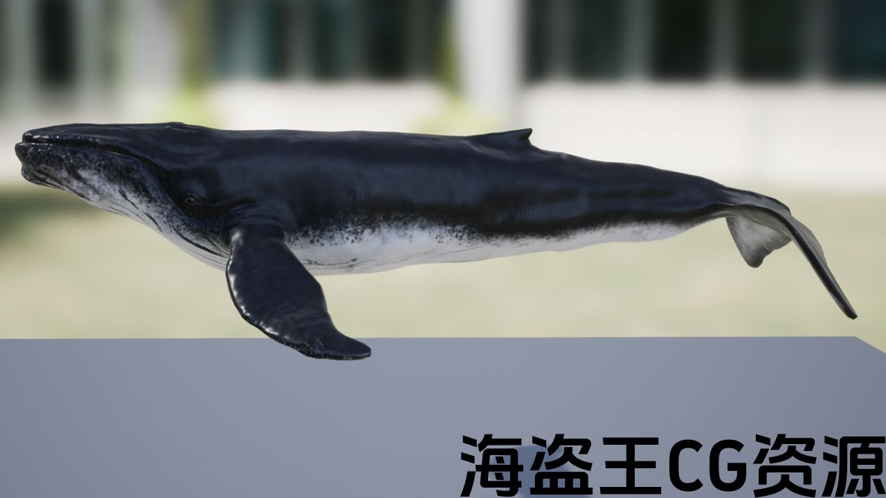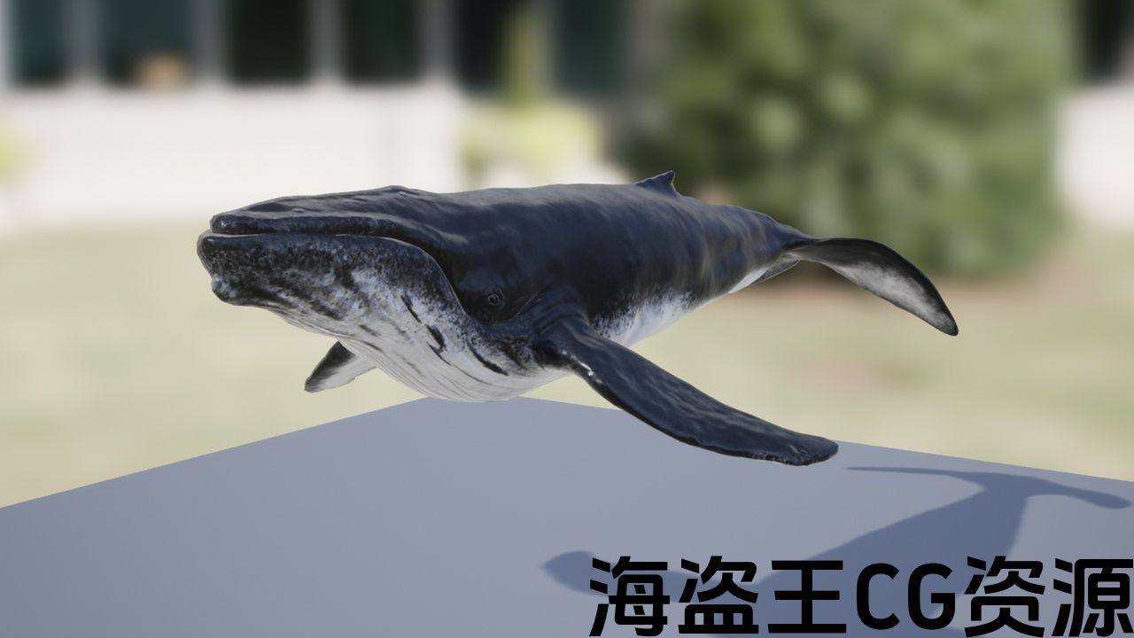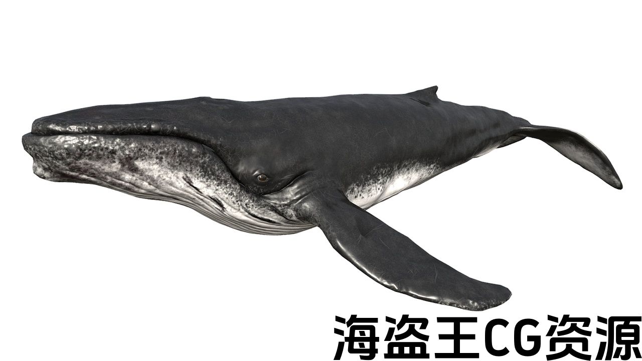 - 逼真的座头鲸模型与PBR纹理,35动画(RM/IP)
