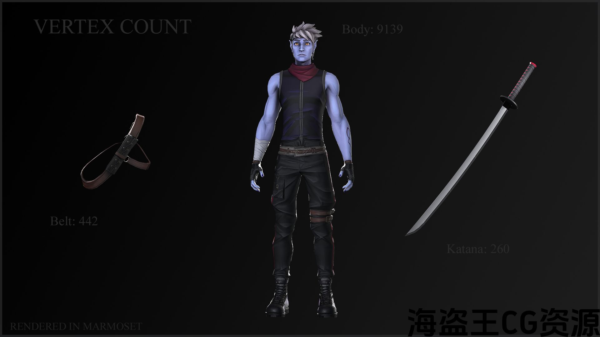 Vertex counts of characters: Character – 9139; Belt – 442; Katana – 260