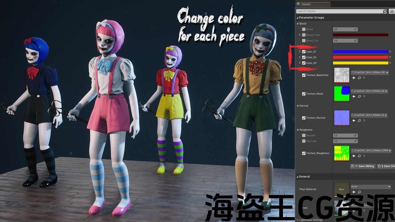 每个纹理都很细致,每种材料都可以 定制化 与 参数值 来改变颜色。