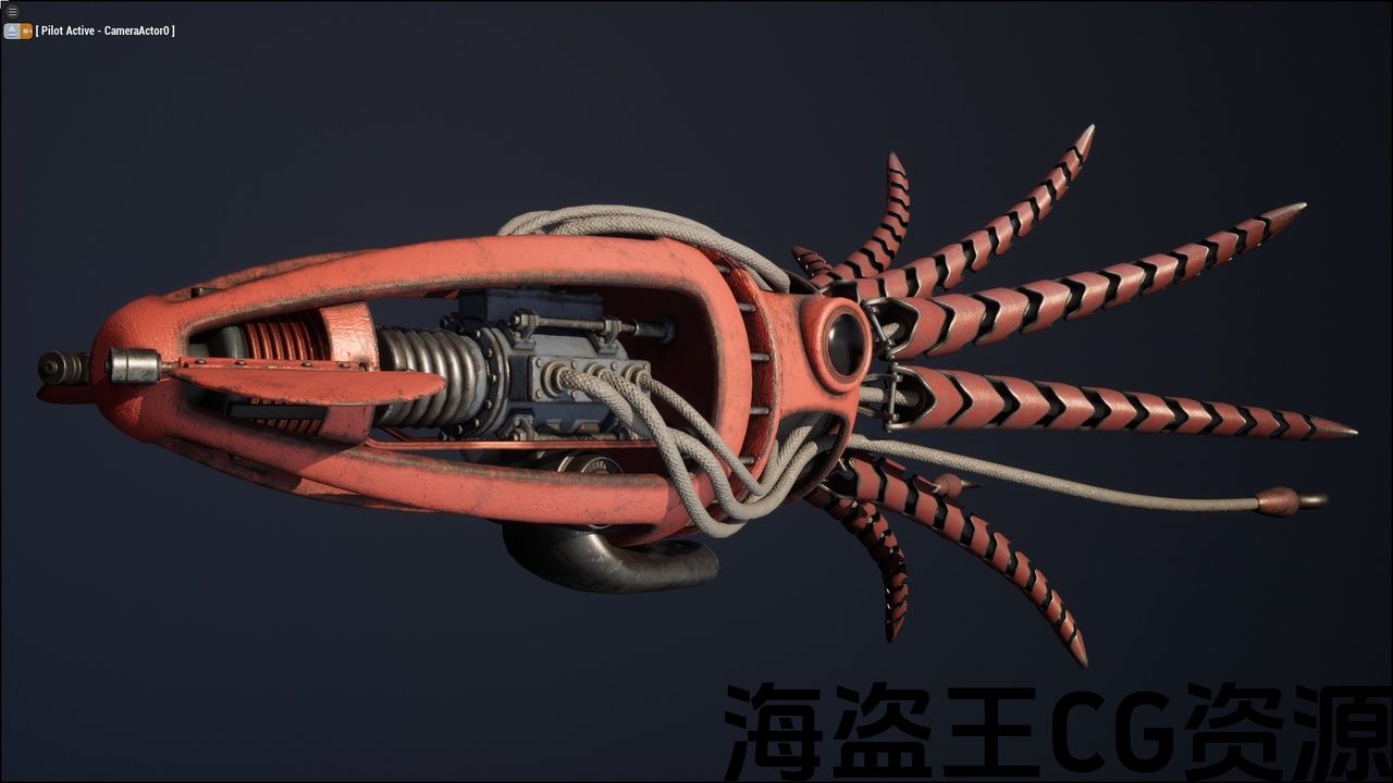 这种巨型鱿鱼由电动泵提供动力。 高压下的水被送入触手并使它们移动。 泵需要大量的能量才能运行,因此在头部有一个生物反应器将食物转化为电能。