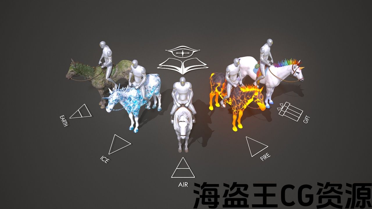 字符的顶点计数:土马(22967verts);冰冻马(23007verts);风马(37399verts);火马(56735verts);彩虹马(44034verts);骑手(4058verts)