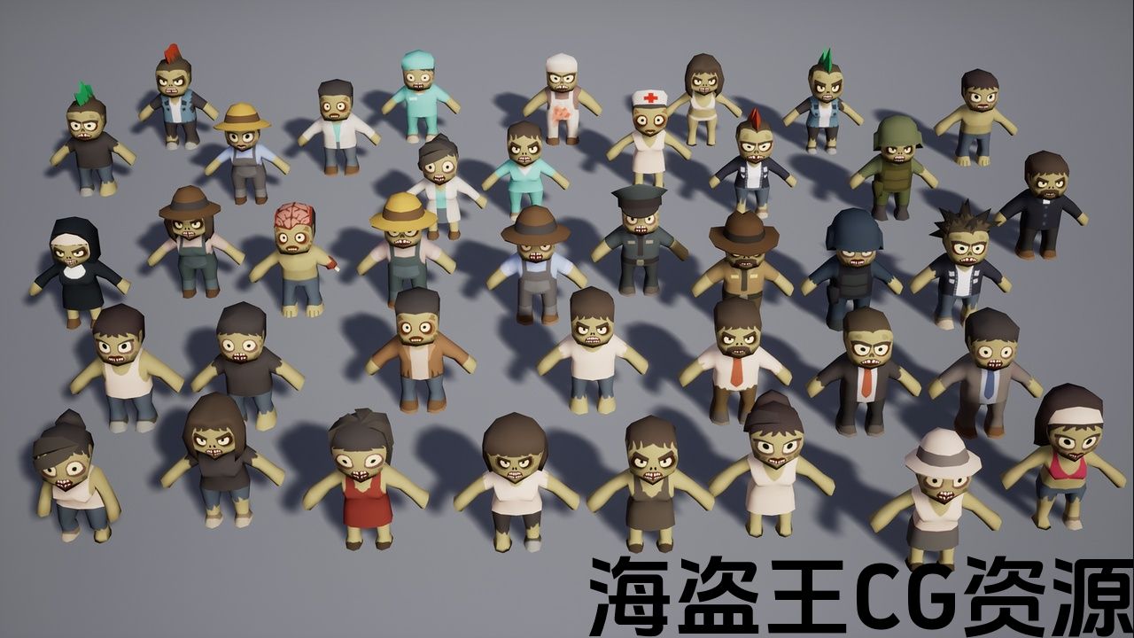 Fully Customizable Cartoony Low Poly Zombie characters pack. Fully animated. Mobile Friendly