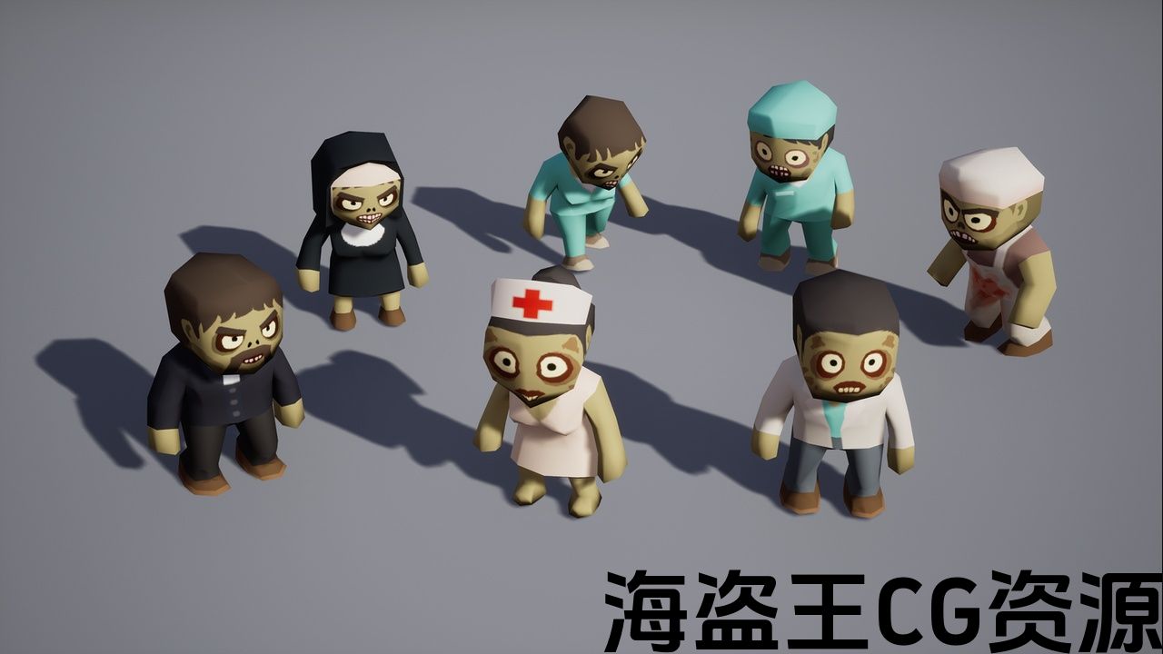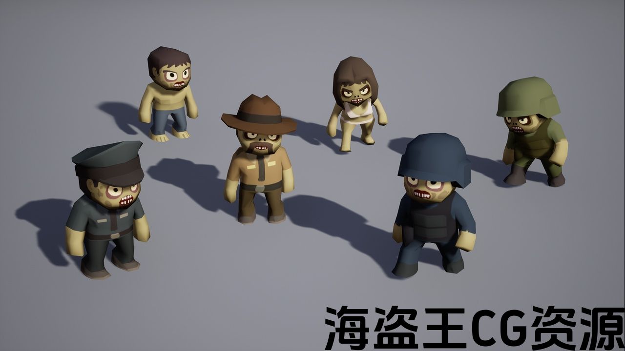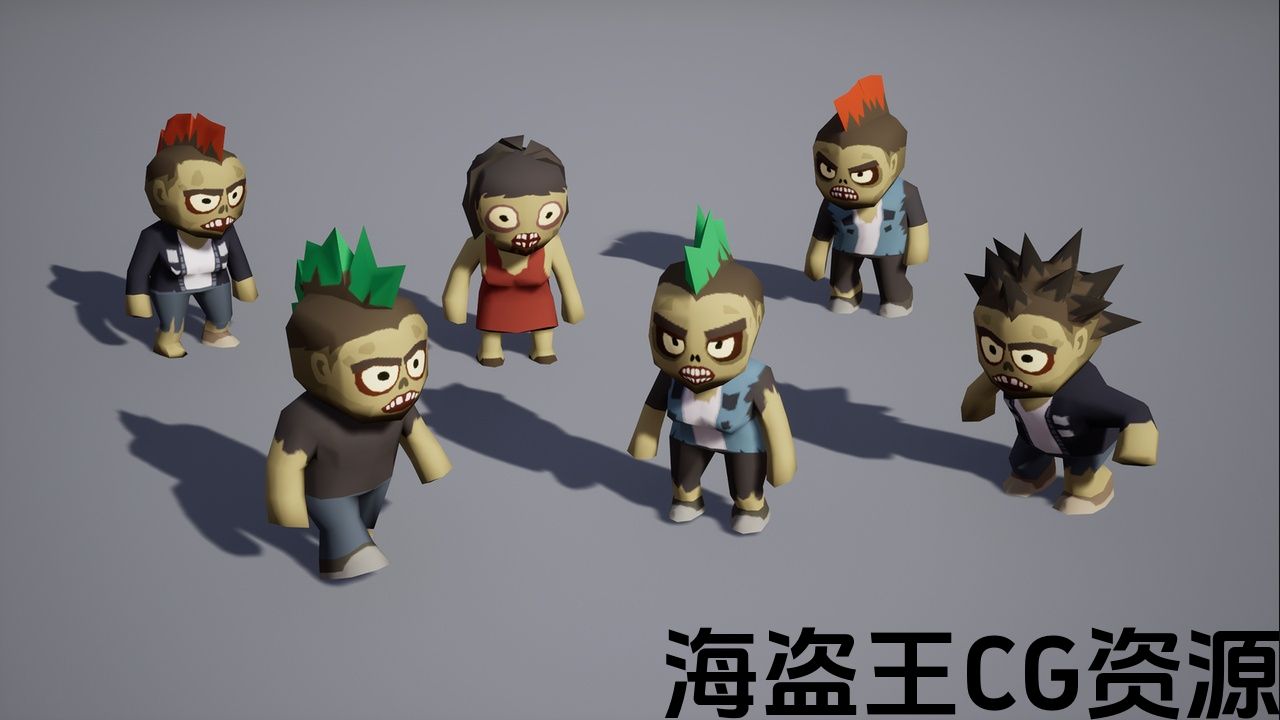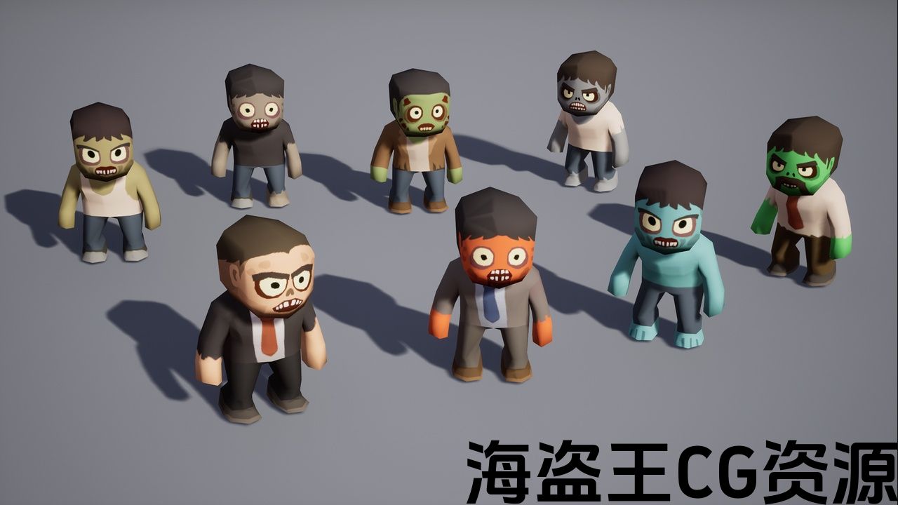 完全可定制的卡通低聚僵尸字符包。 全动画。 流动友好