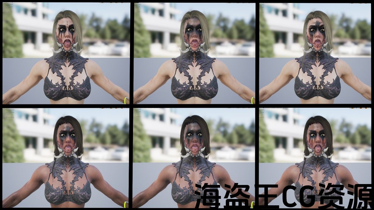在模型中有3组纹理在2头上有额外的纹身(3件)在模型中有一组盔甲的选项,这些盔甲与纹理集相结合