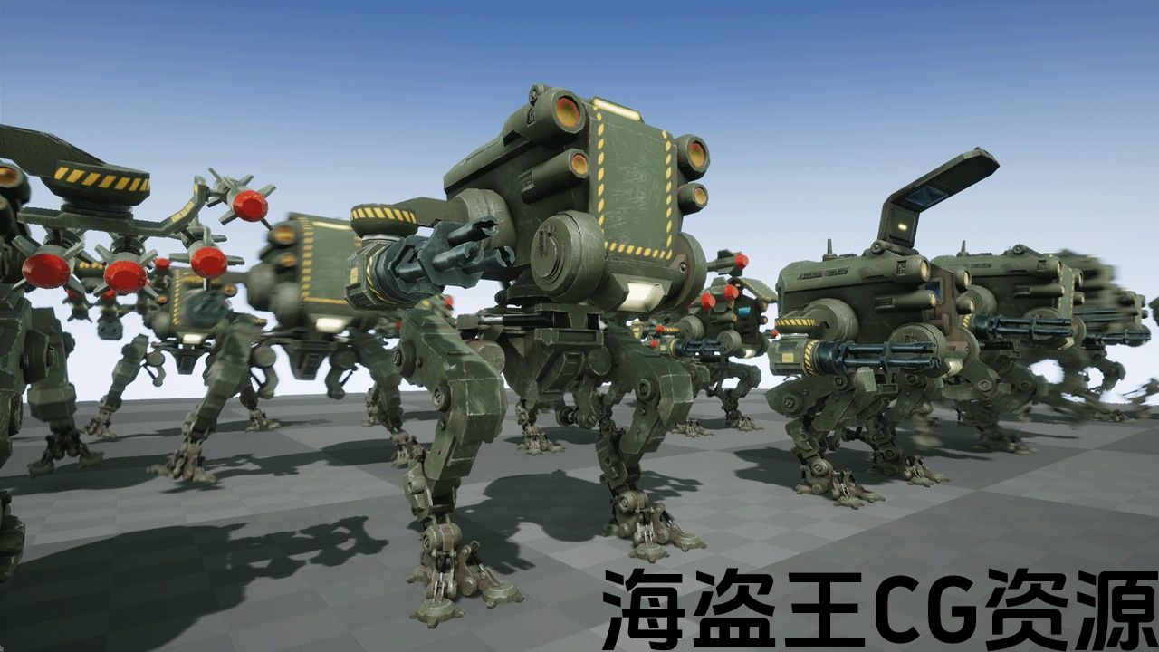 模型是35.08Ktris最大总计(Biped Mech:28.32K Tris,Minigun:1.65K Tris,
