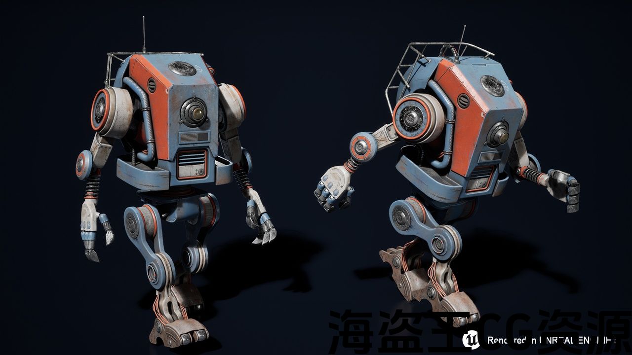 Low-poly model of the character “Robot Robbie 02” Rigged to the UE4 Epic Skeleton.